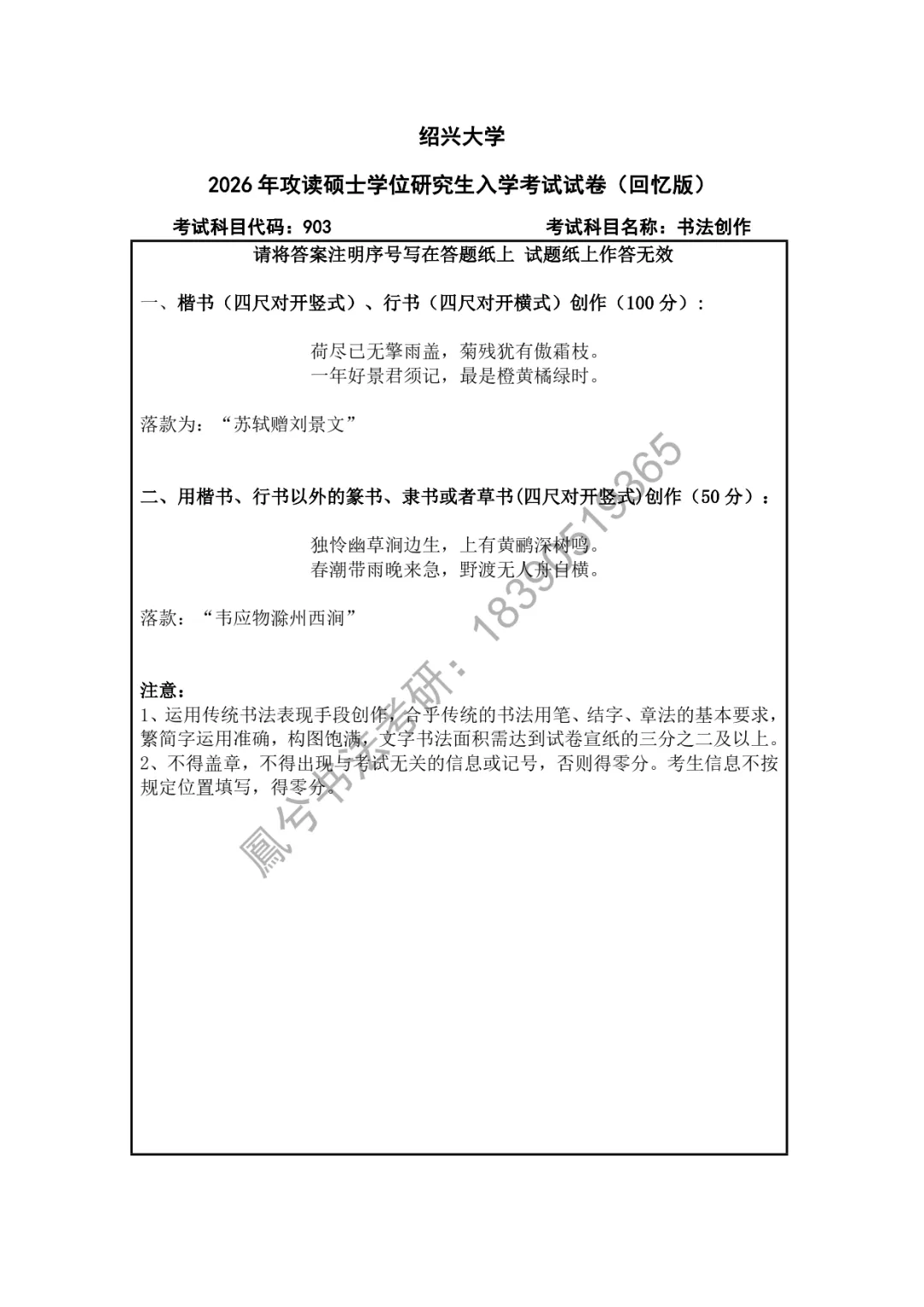 书法考研真题 | 近三年绍兴文理学院(绍兴大学)真题汇总(24年—26年)