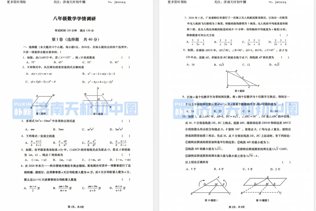 各位同学们、家长们大家下午好呀!我是天天老师~济南各区初一、初二期中考试正在陆续开考~天天帮大家收集整理了真题试卷,有需要的同学和家长可以自行领取