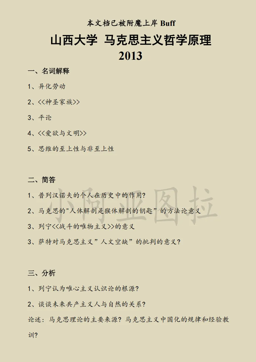>山西大学哲学考研历年真题:2004-2026