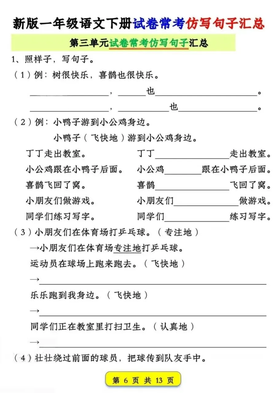 26新一年级下册语文期中句式训练五大专项练习(含答案