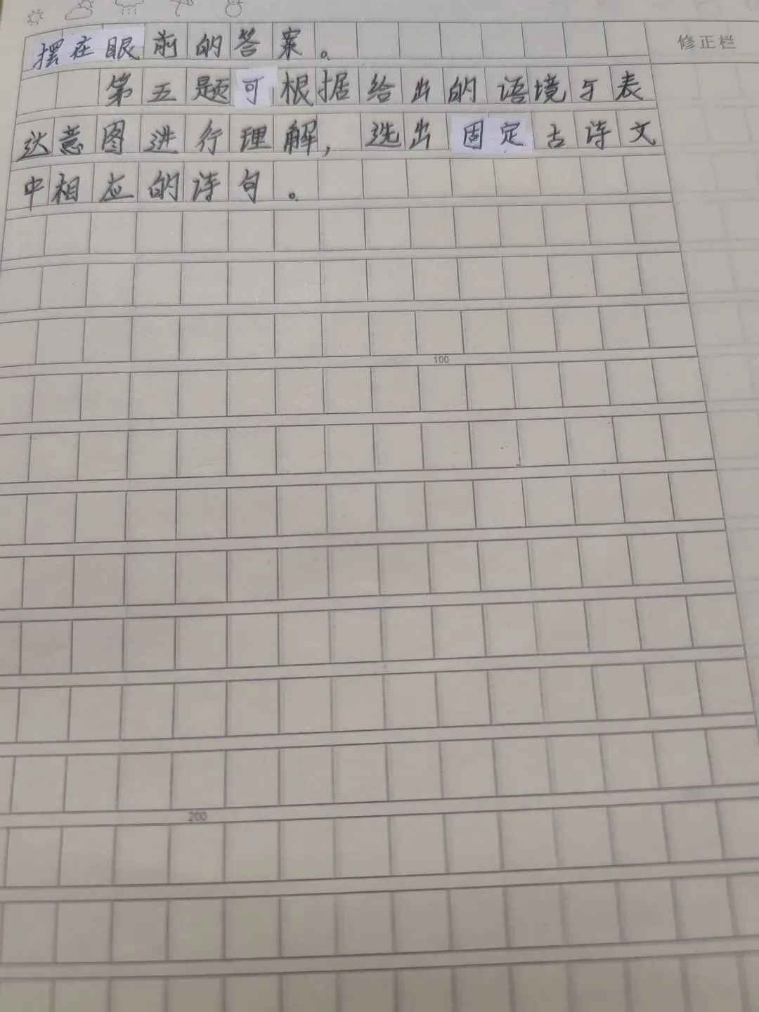 第五题可根据给出的语境与表达意图进行理解,选出固定古诗文中相应的诗句。