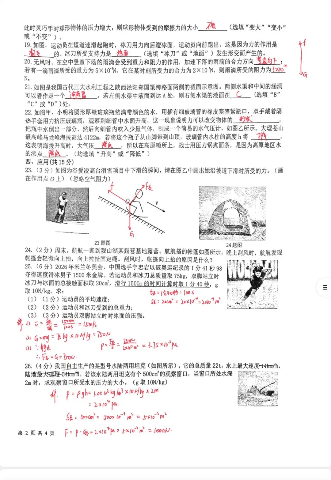 第 25 题(速度、重力、固体压强)