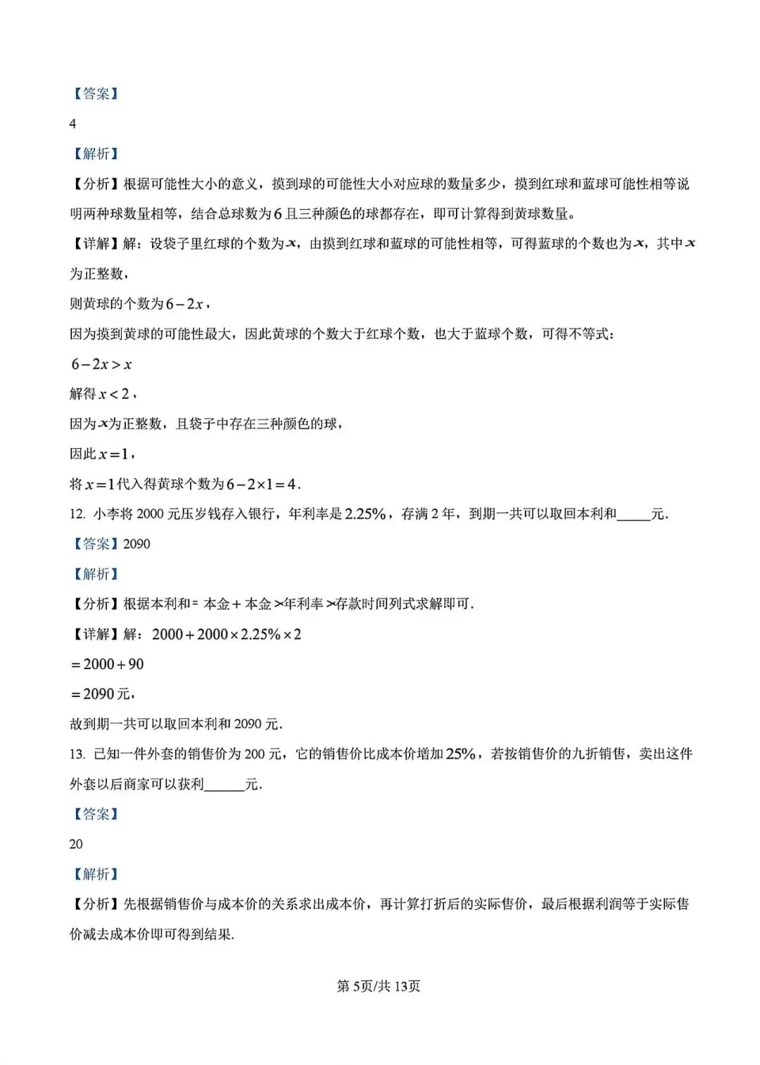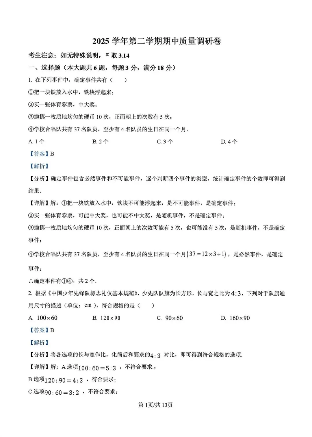 上海市闵行区六年级下学期数学期中试卷及答案(2026.4)