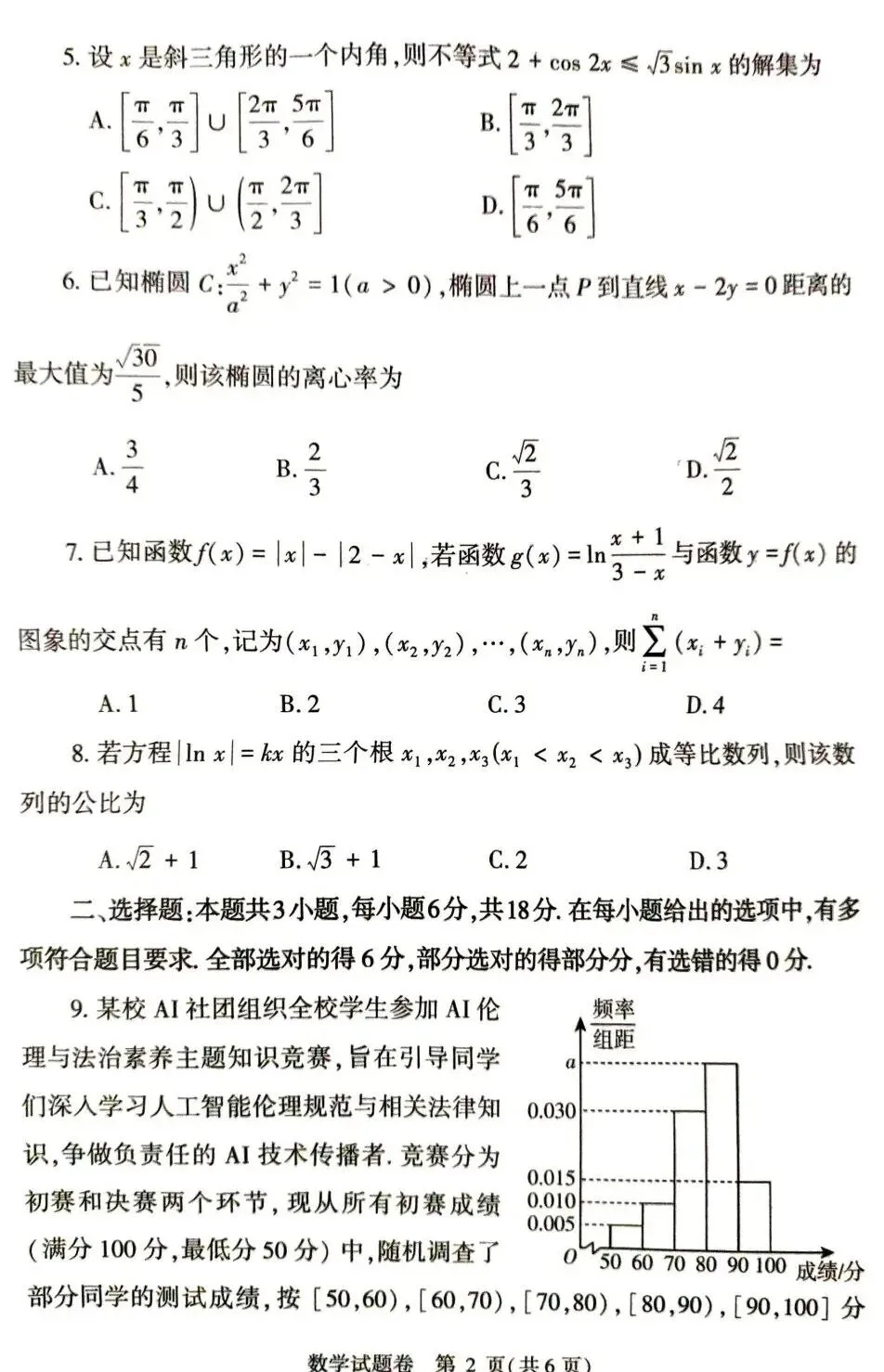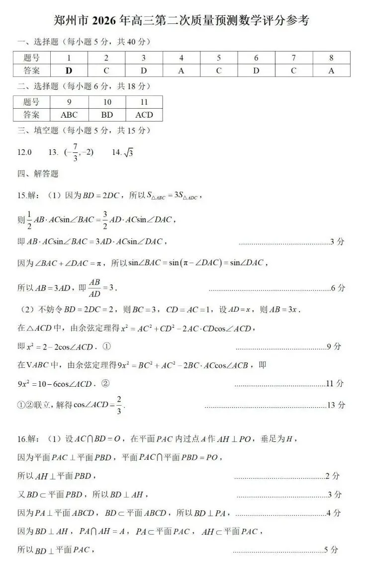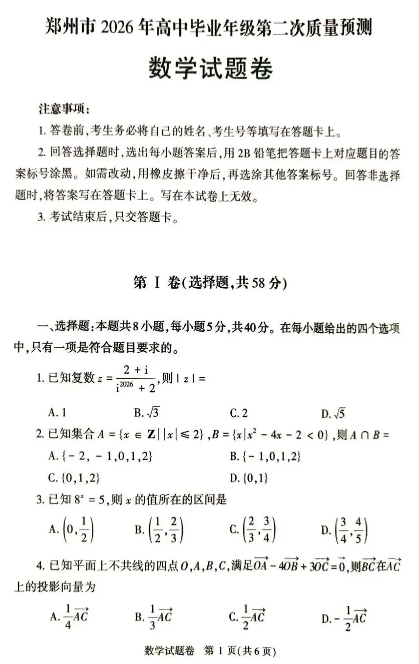 >25-26郑州市高三二测数学试卷及答案