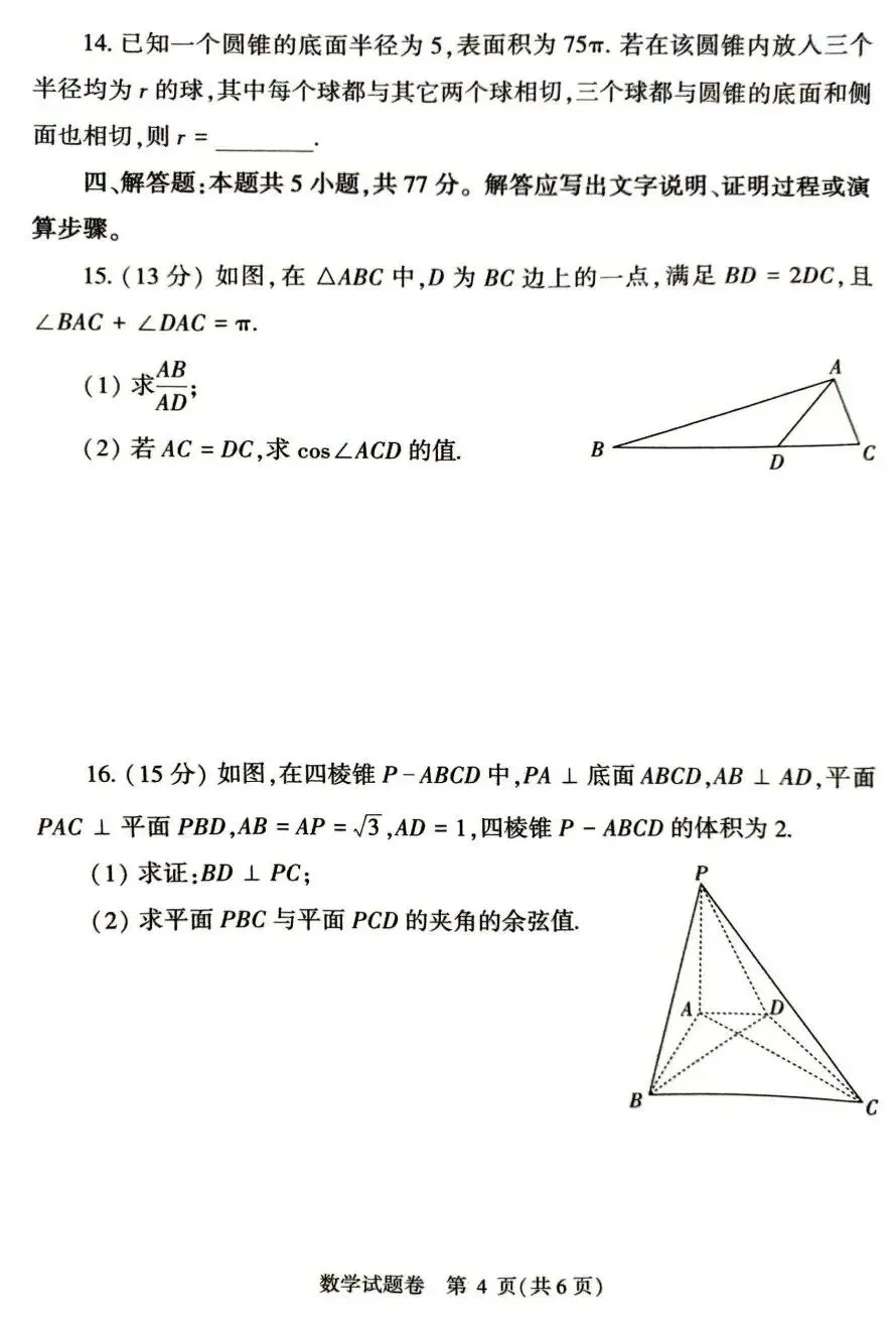 25-26河南五市高三二模数学试卷