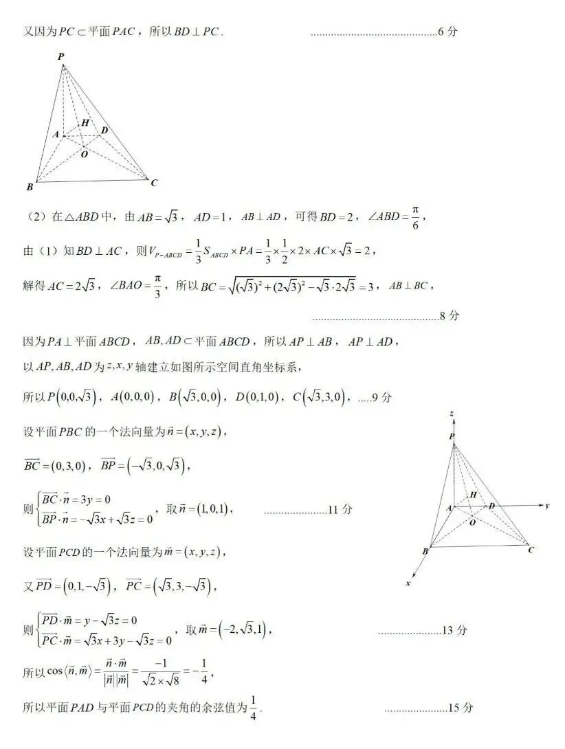 乌鲁木齐市一模数学试卷手写版答案