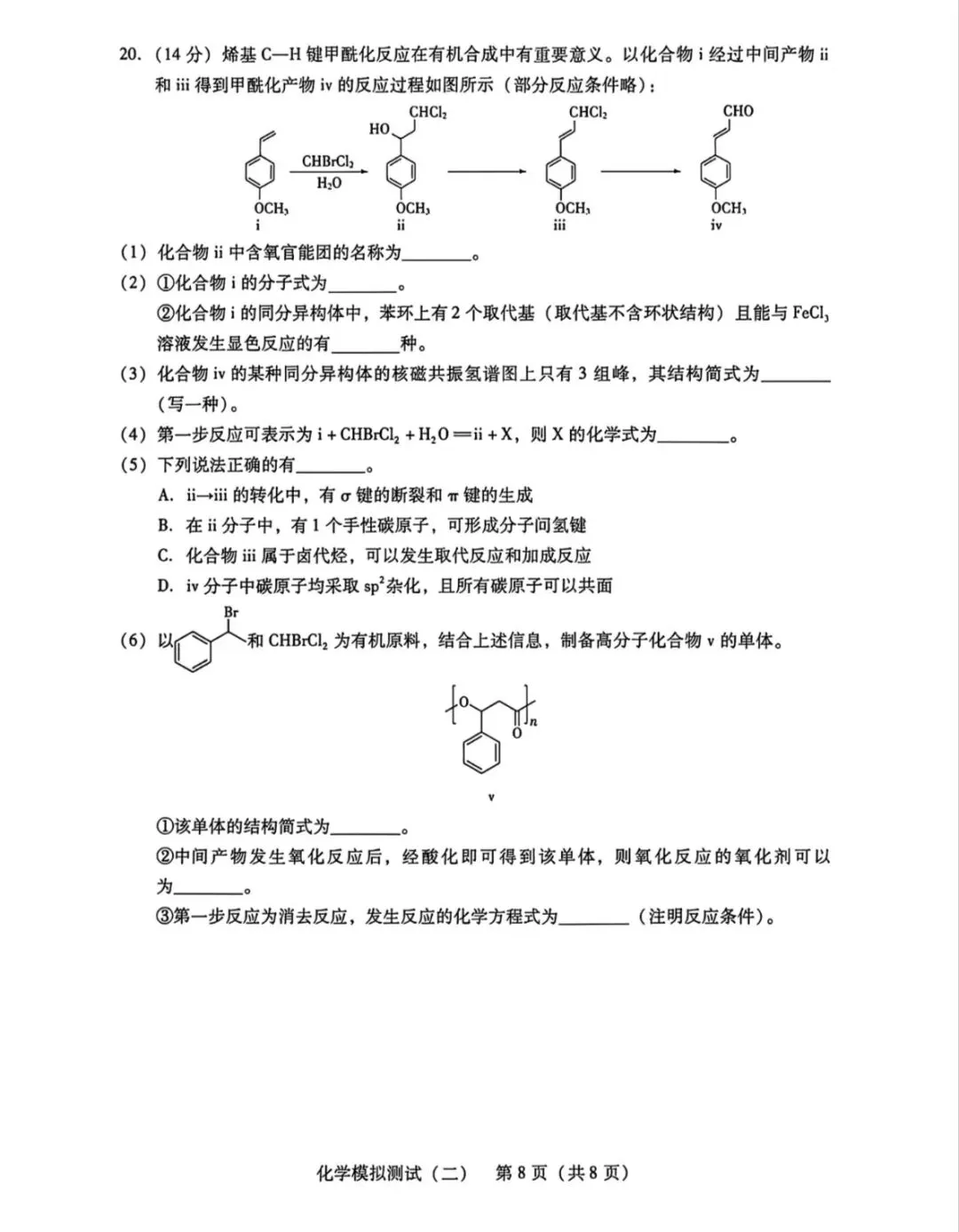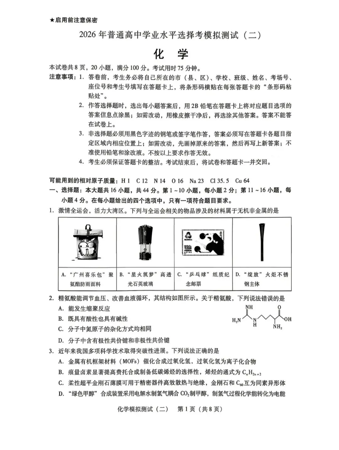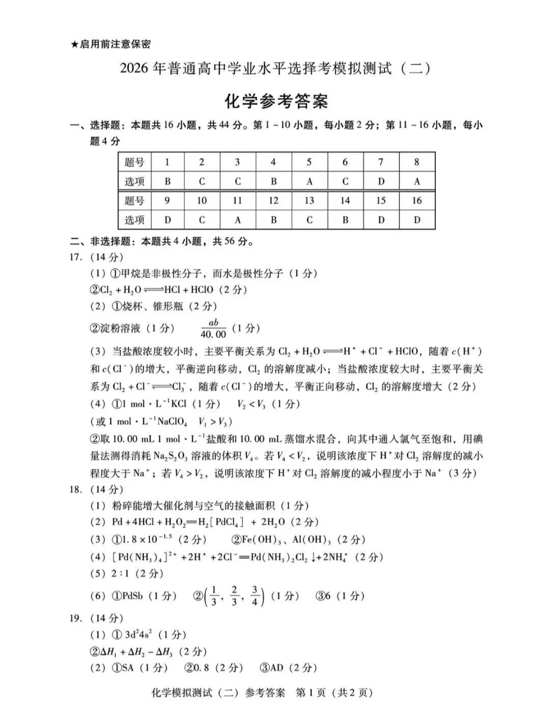 当前位置:首页>考研真题>2026年4月广东高三二模化学试卷和参考答案