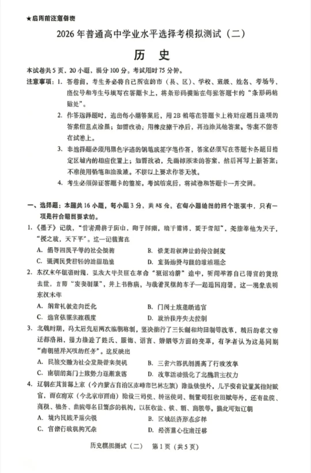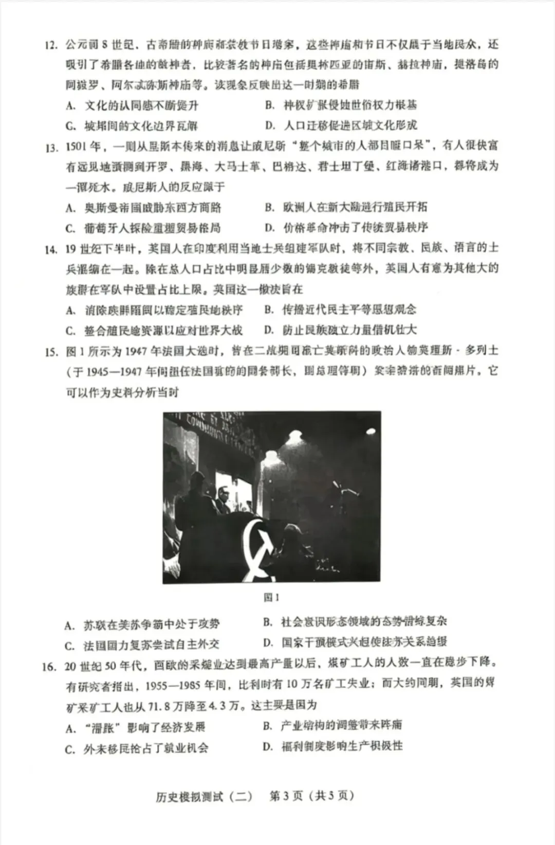 当前位置:首页>考研真题>2026年4月广东高三二模物理、历史试卷和参考答案