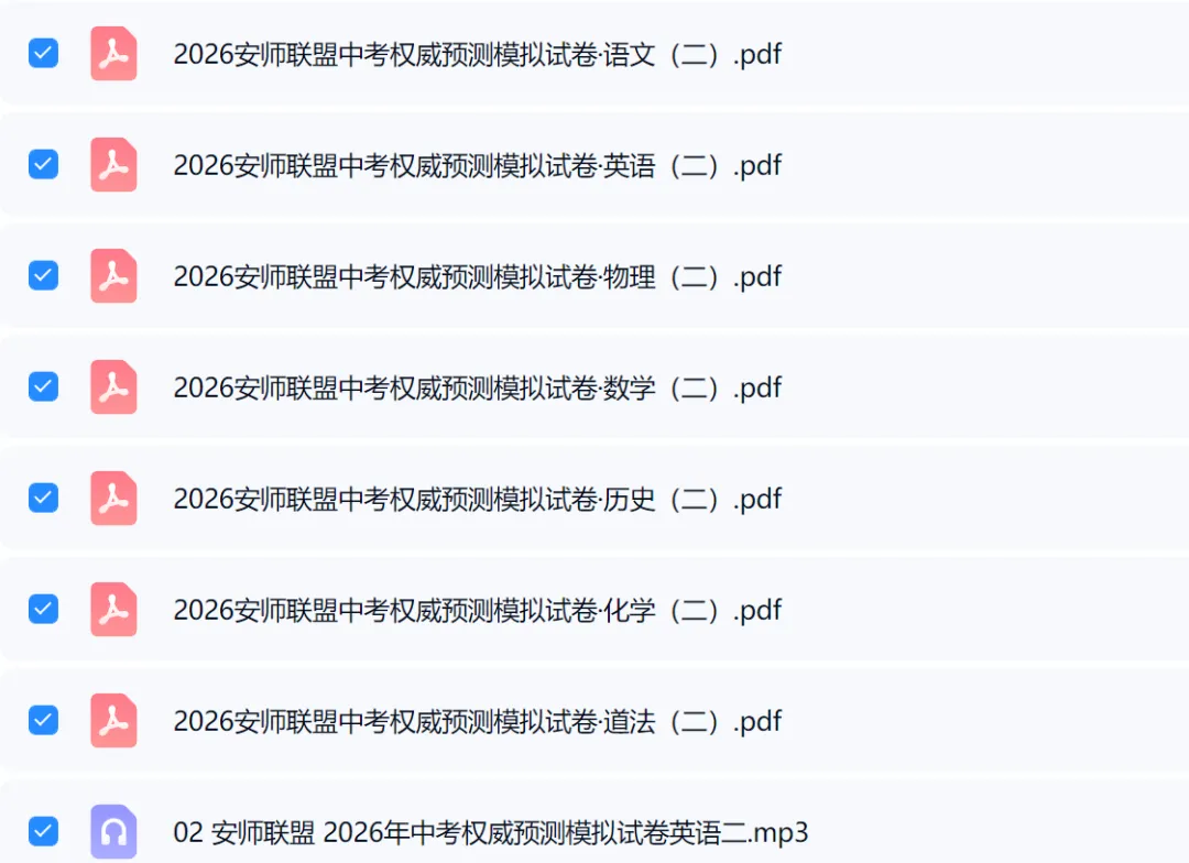 通过百度网盘分享的文件:02 安师联盟 2026年中考权威预测模拟试卷英语二.mp3