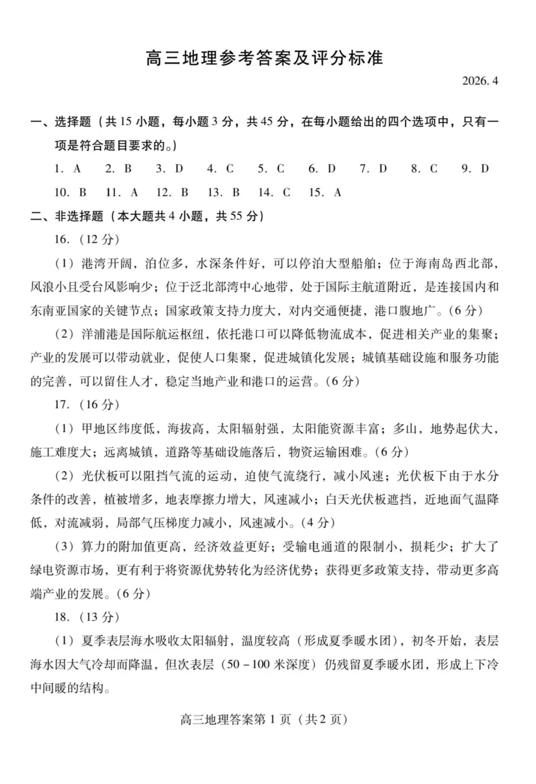 2026年4月广东高三二模物理、历史试卷和参考答案
