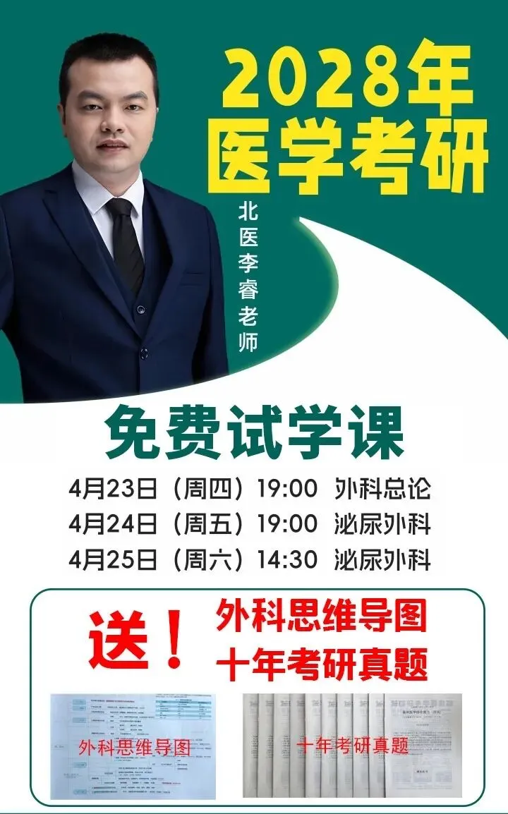 【医学考研】北医李睿老师硕本免费试学课今天晚7:00开始!参与即送李睿老师亲自编写外科思维导图和十年