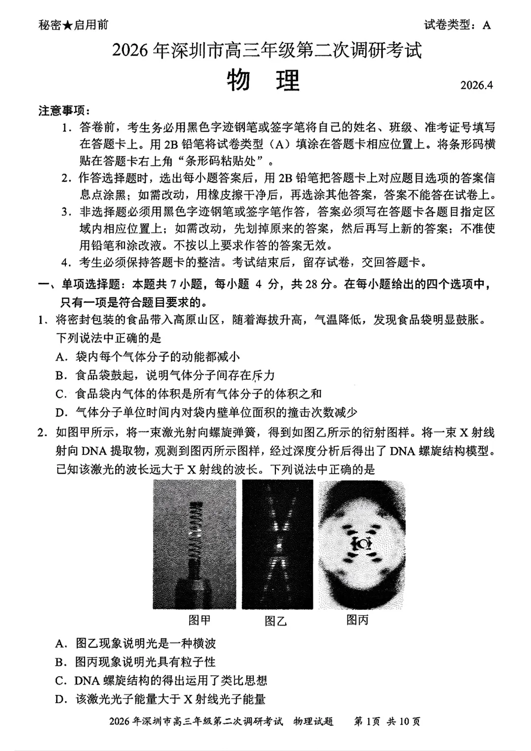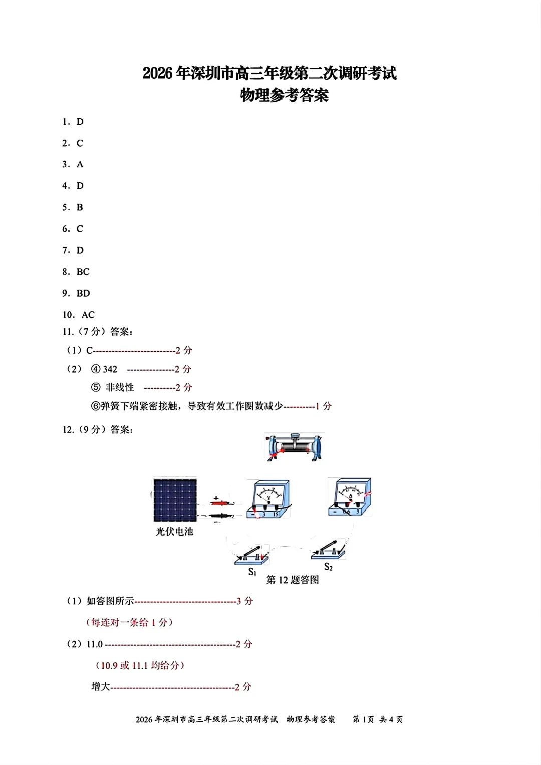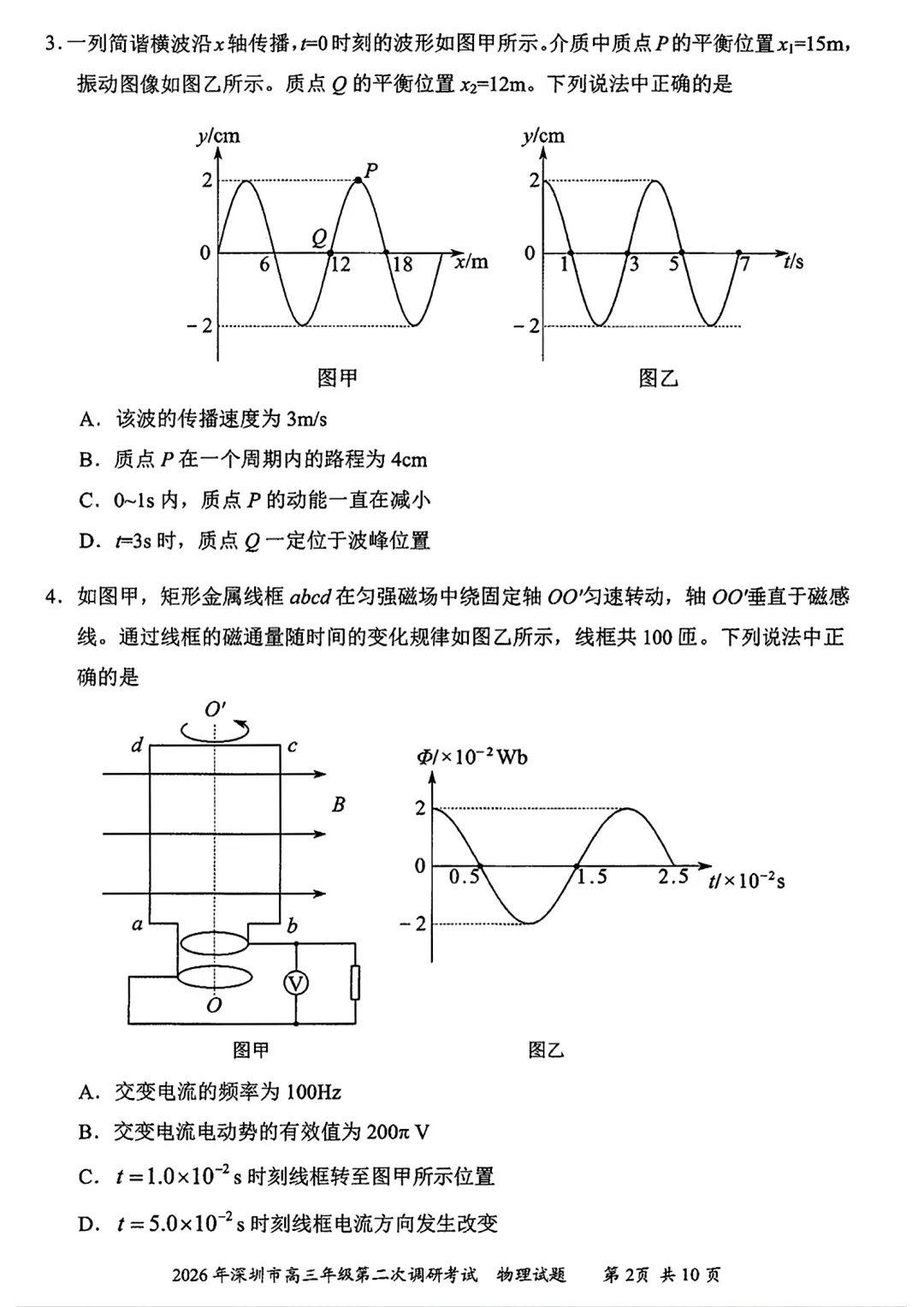 2026届广东深圳市高三下学期第二次调研考试物理试题.pdf