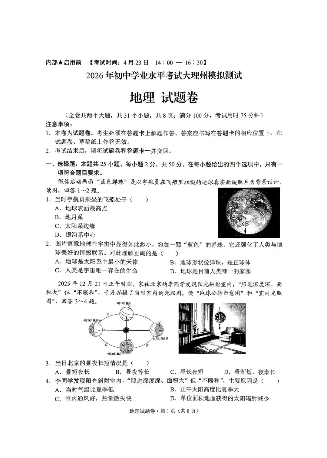 试卷资源||2026年云南文山州初中学业水平模拟考试地理试卷