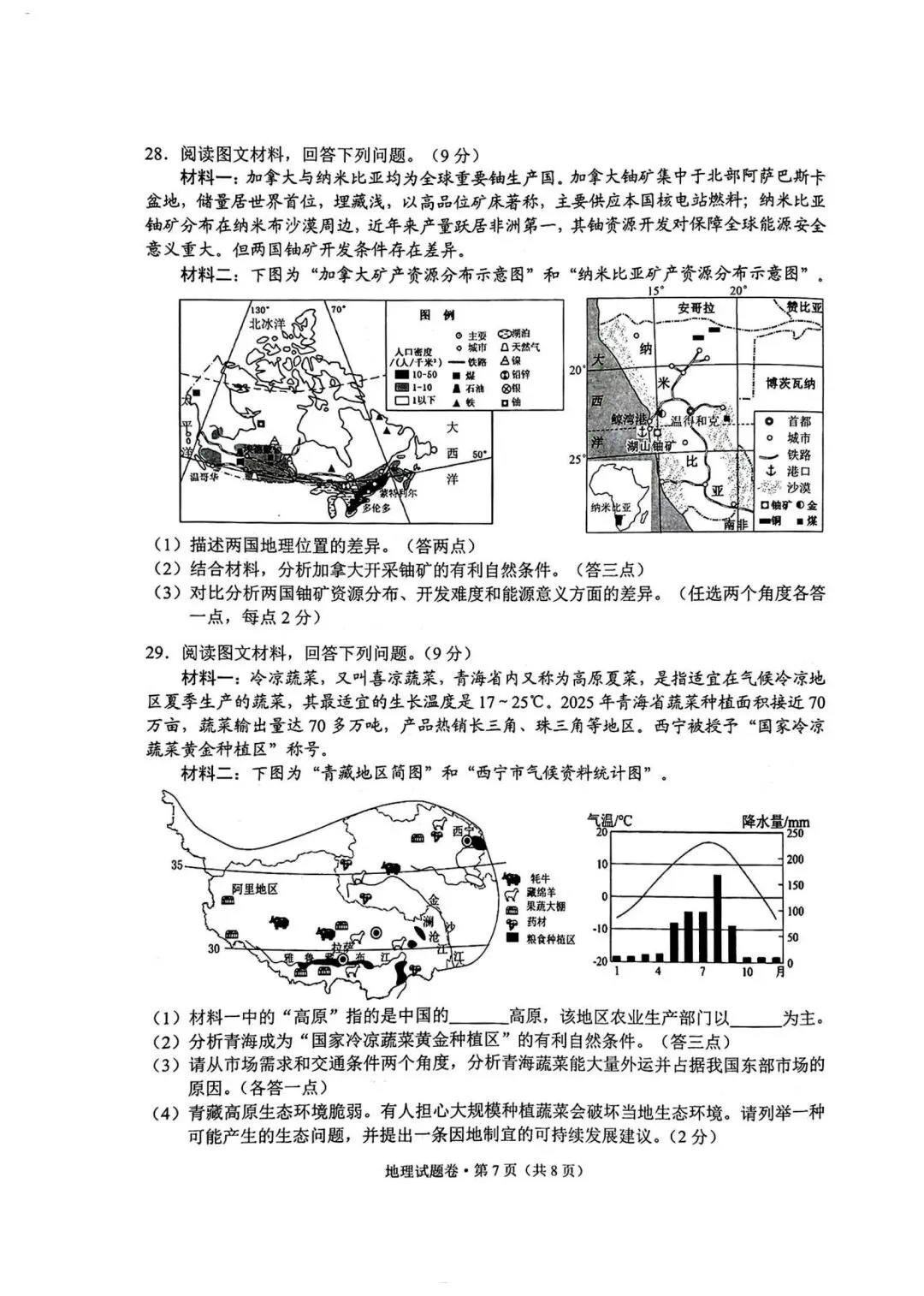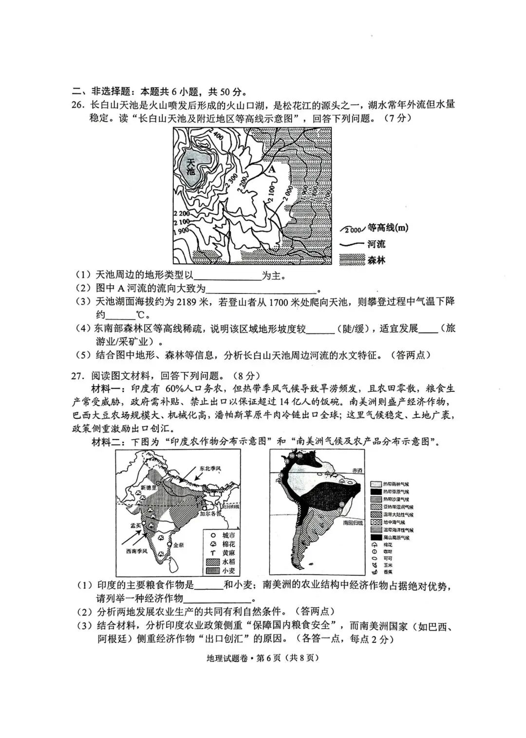 2026潍坊二模地理试卷+答案