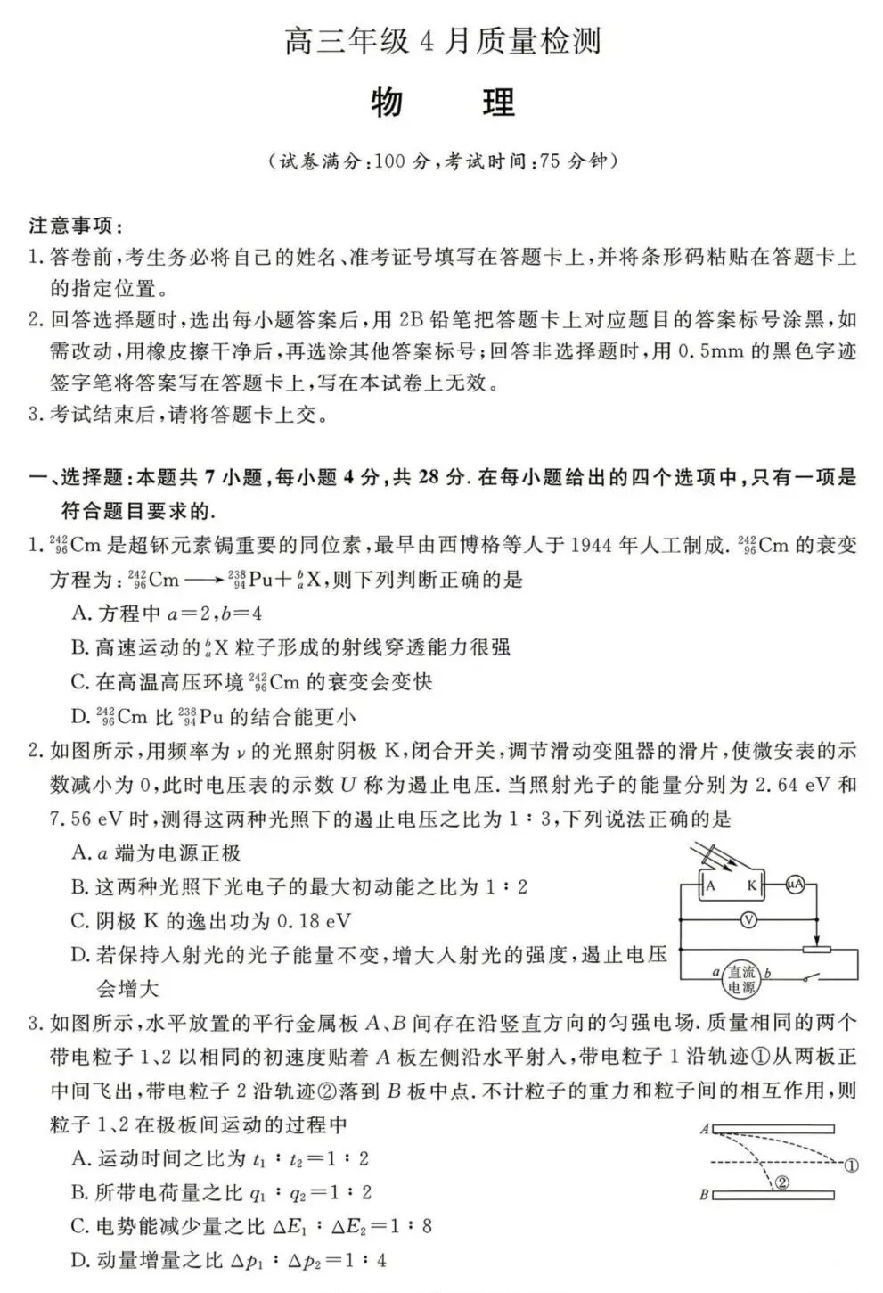 高中物理最新试题2026年4月22日
