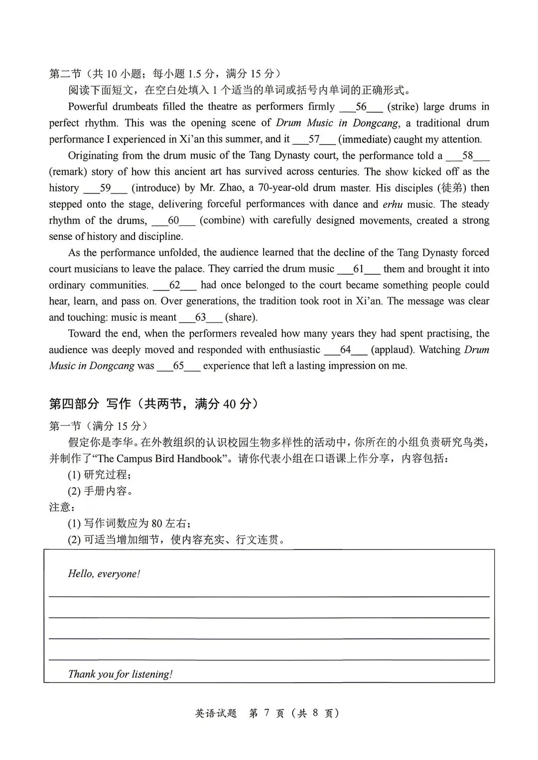 26新人教七下英语期中试卷已出