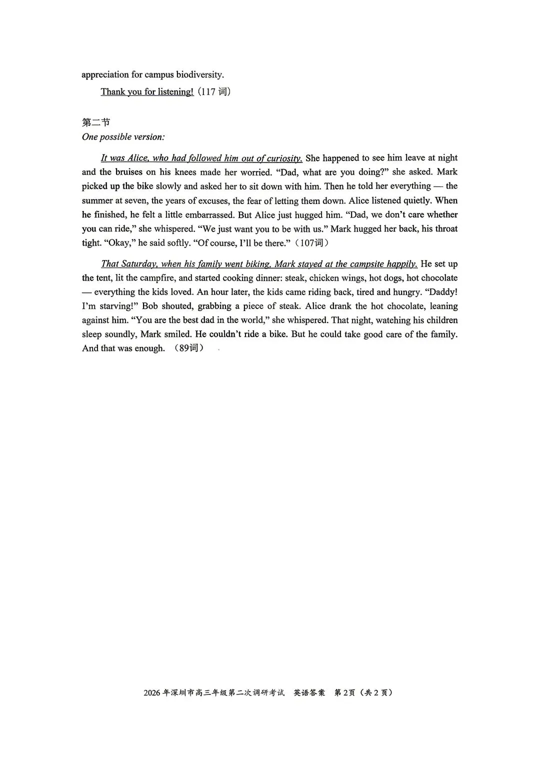 名题精选︱2026年深圳二模高三英语试卷和答案