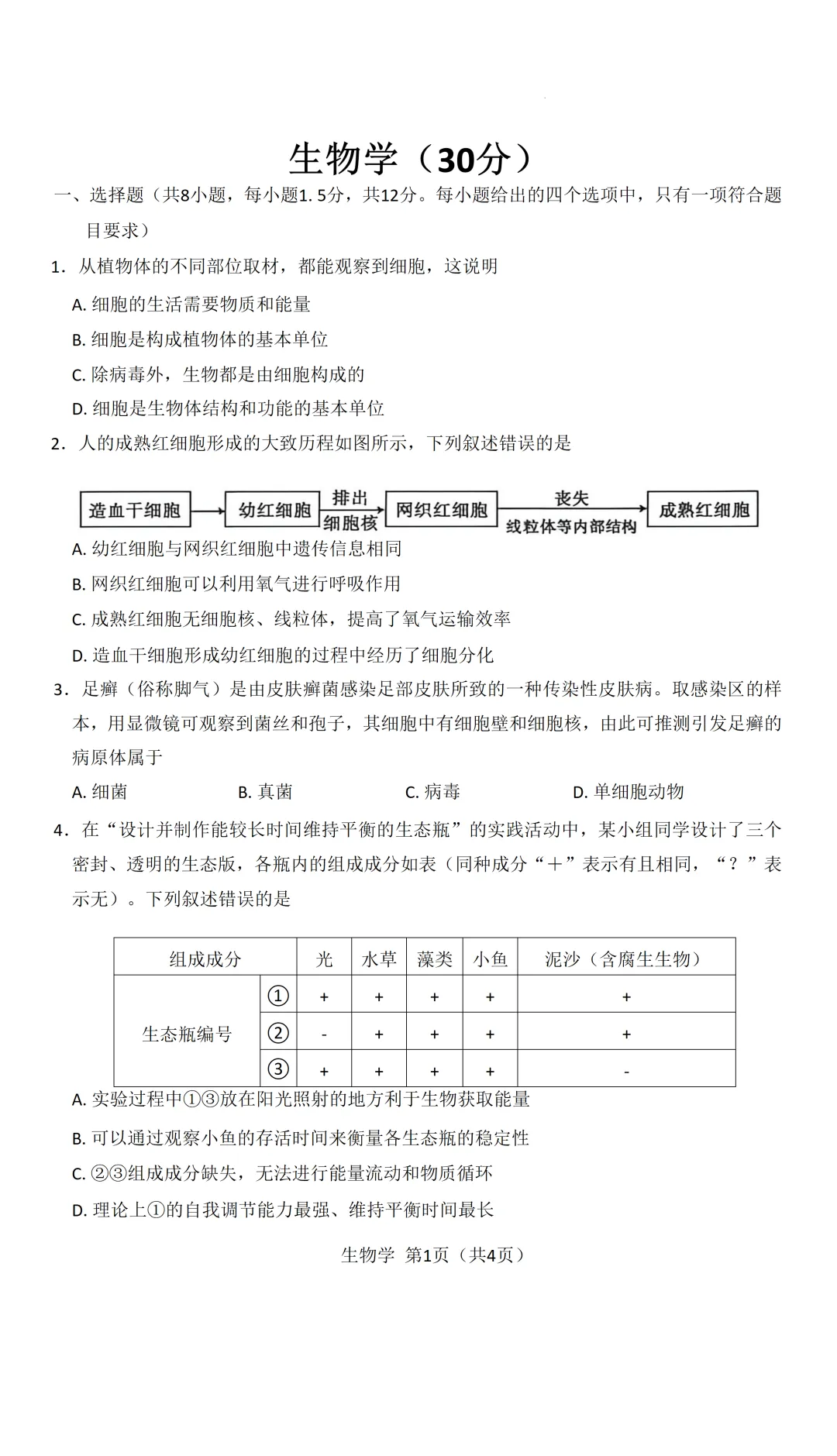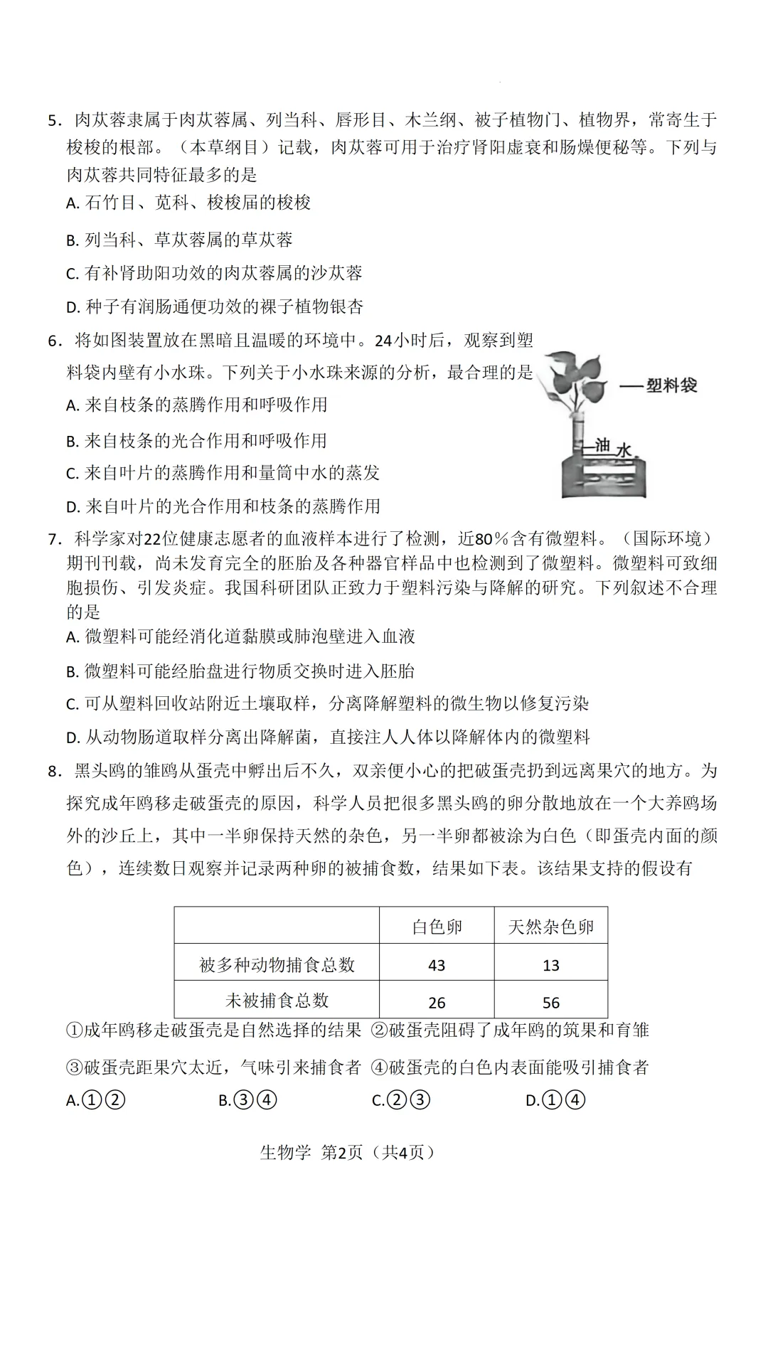 2026道里区八(下)生物·会考模拟试卷及答案