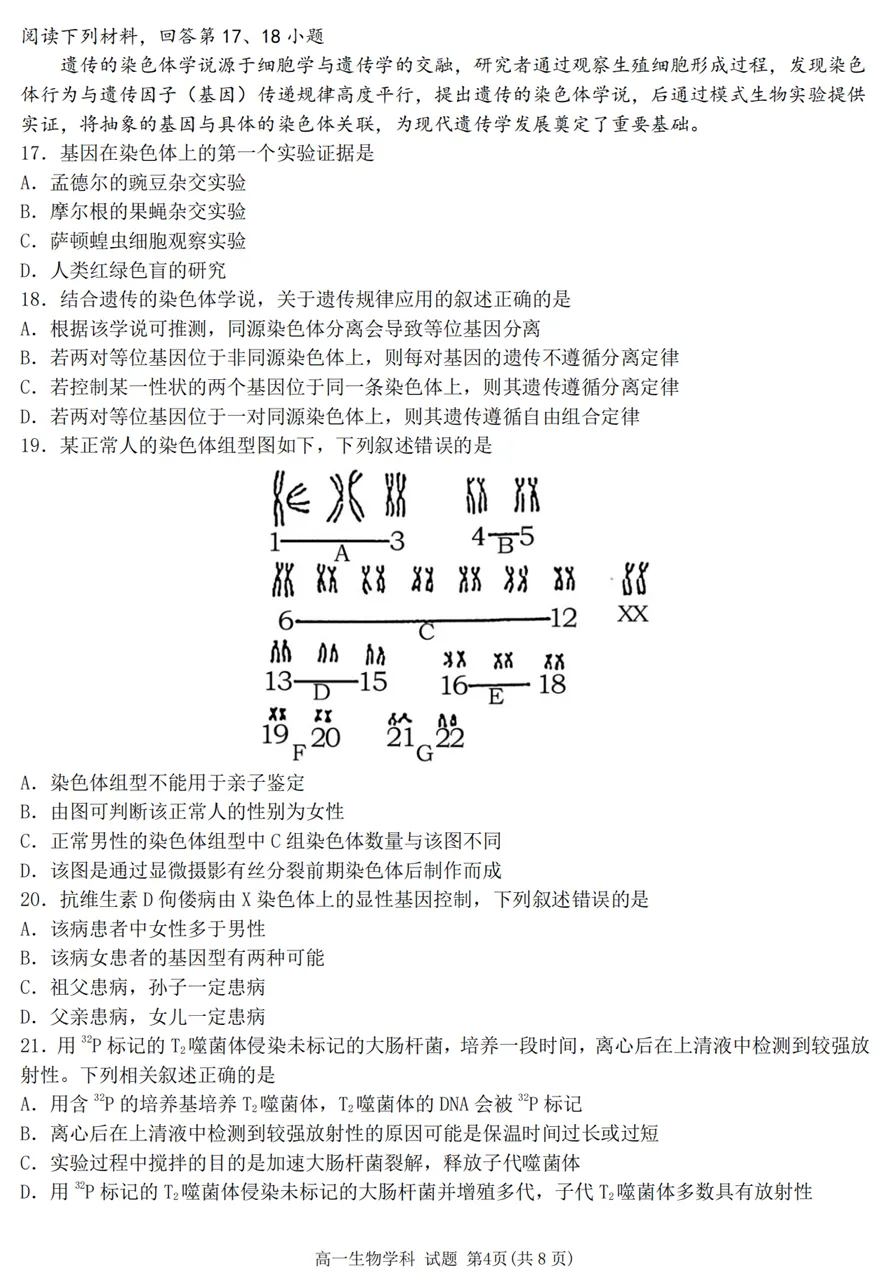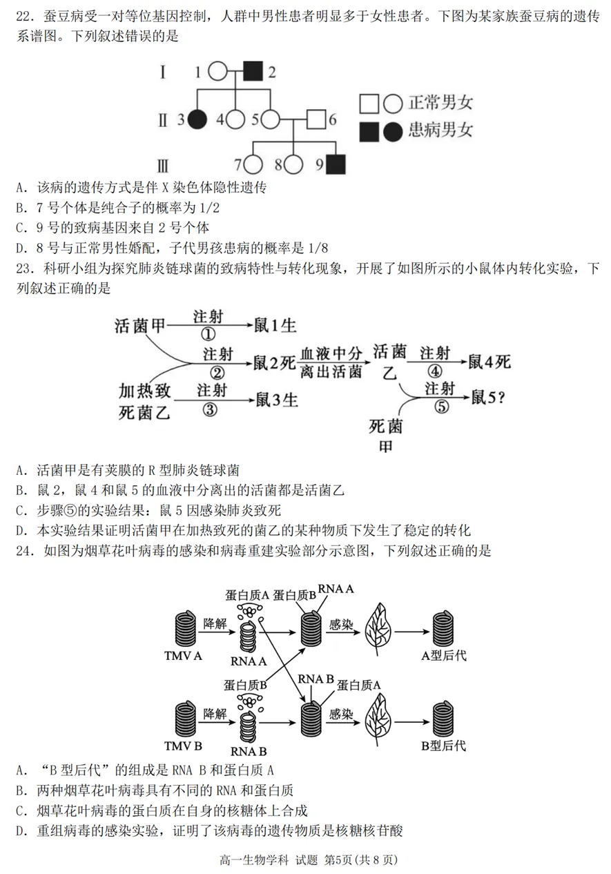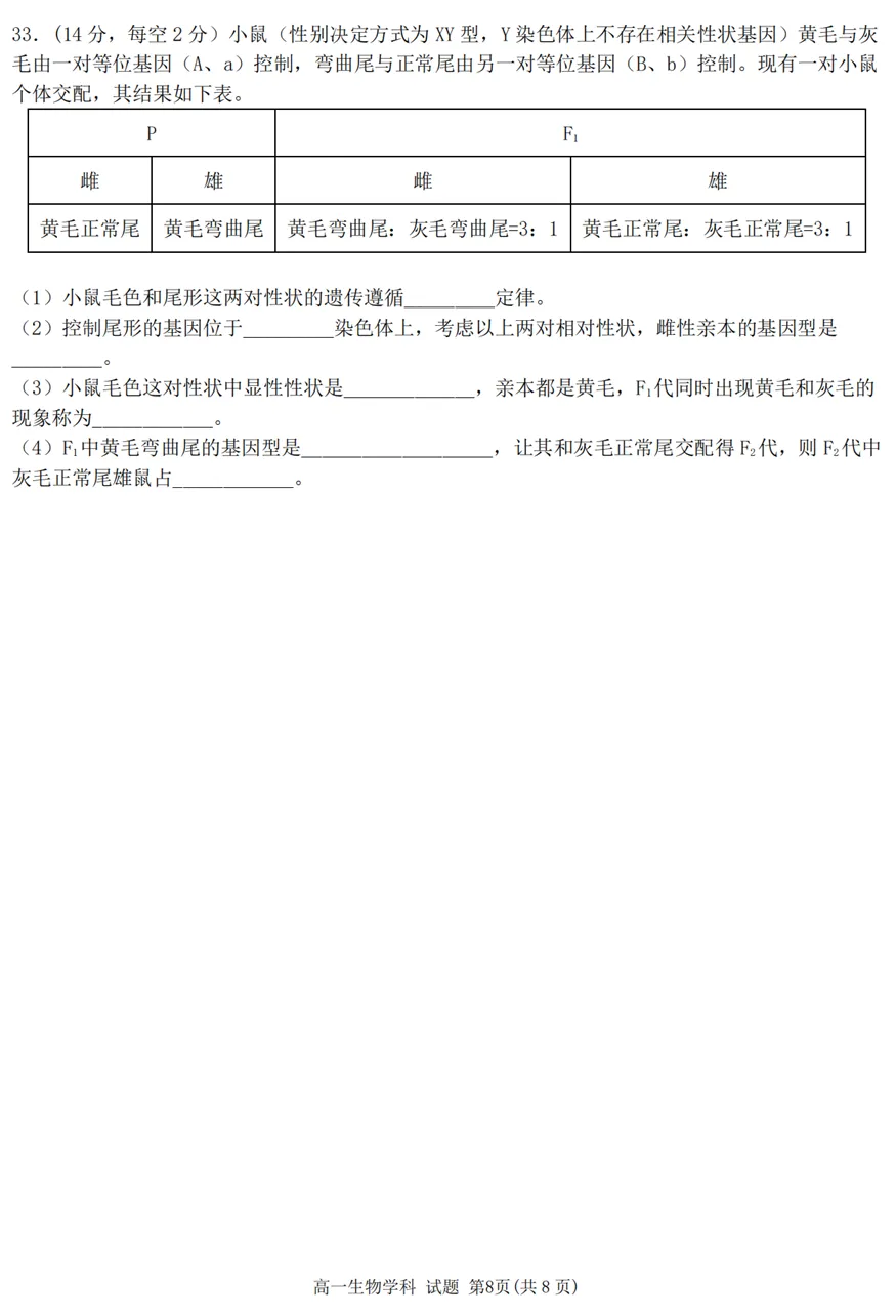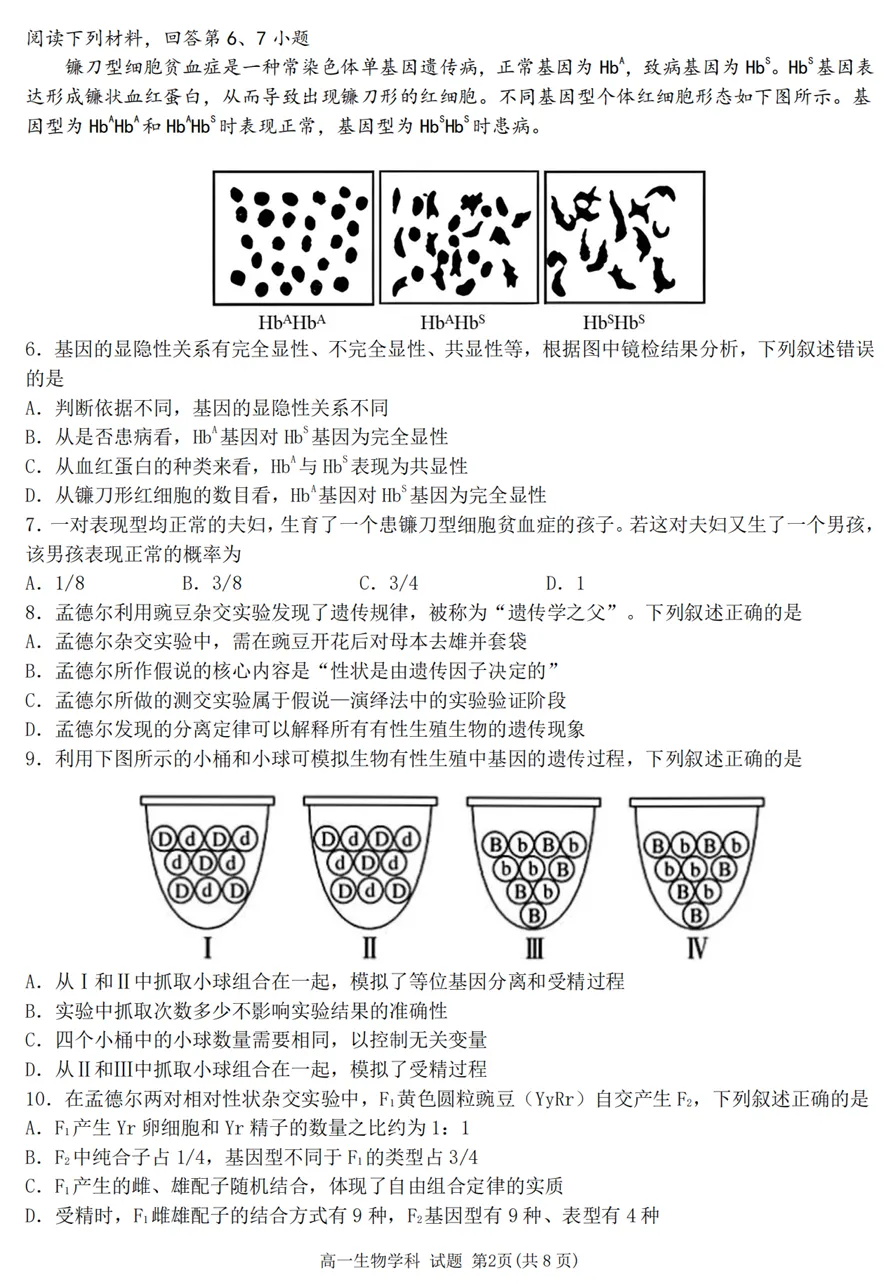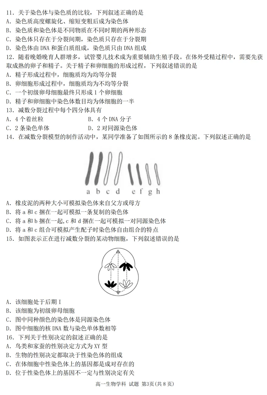 2025年4月浙江各地市高一期中生物试卷答案汇总,可下载!