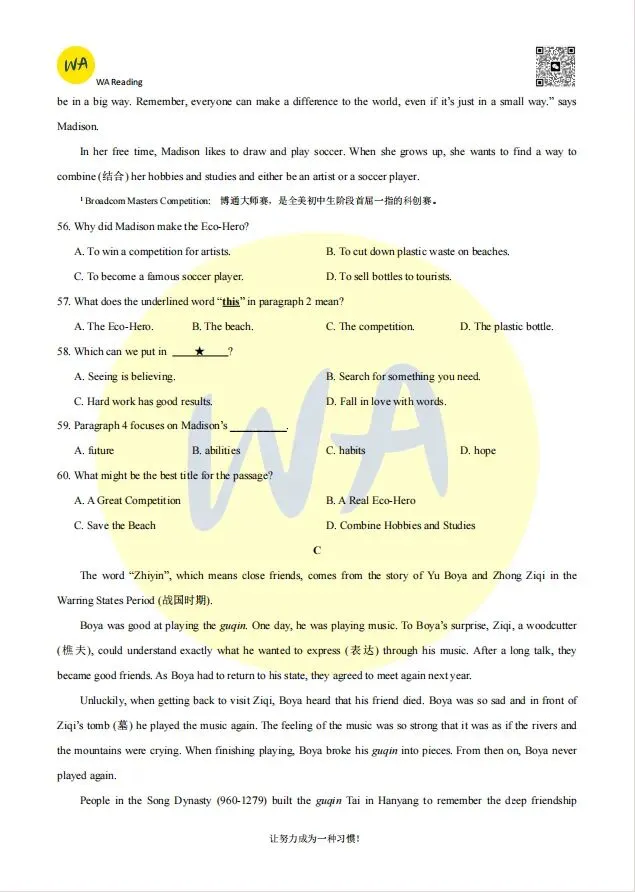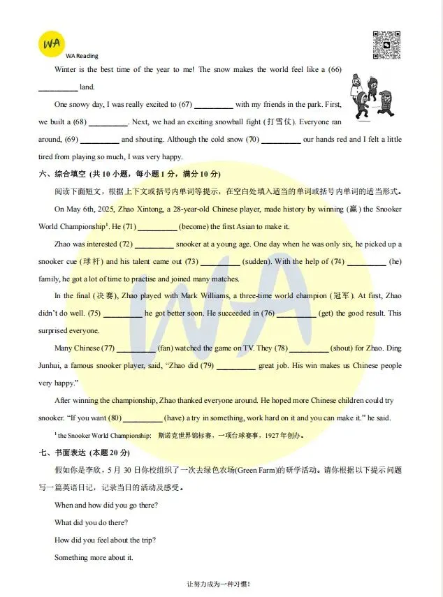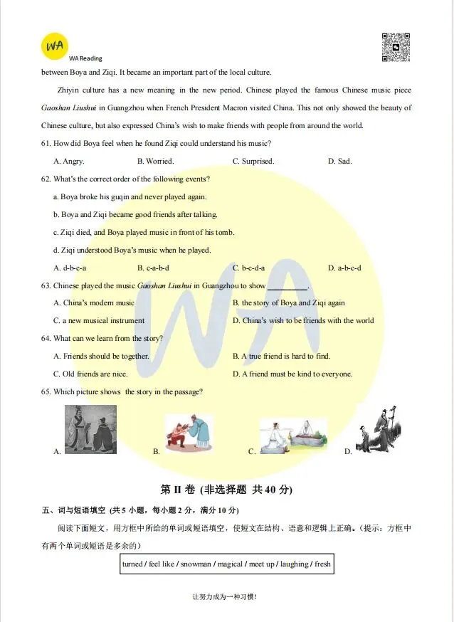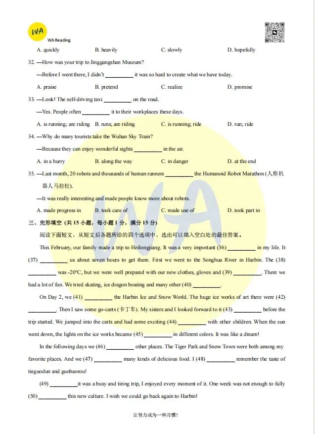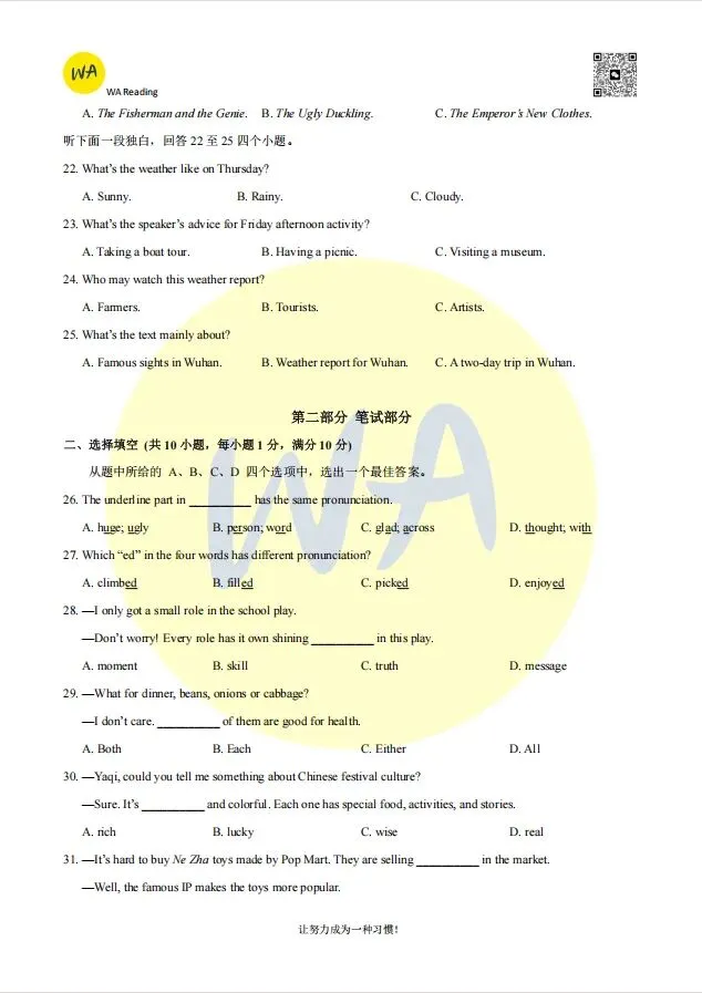 2025-2026东西湖区八下期中英语试卷
