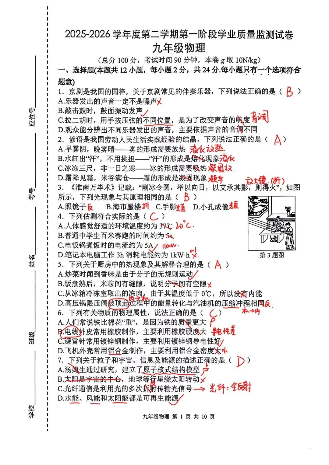 📖2025~2026学年9年级下南京秦淮区一模物理试卷解析⭐试卷整体难度不大,考点相对全面,部分题目非常考验同学们的审题和对题干的解读与分析,尤其是电学压轴题。🌸优秀分值在95+,75+的话刚达高中线,同学们继续加油!