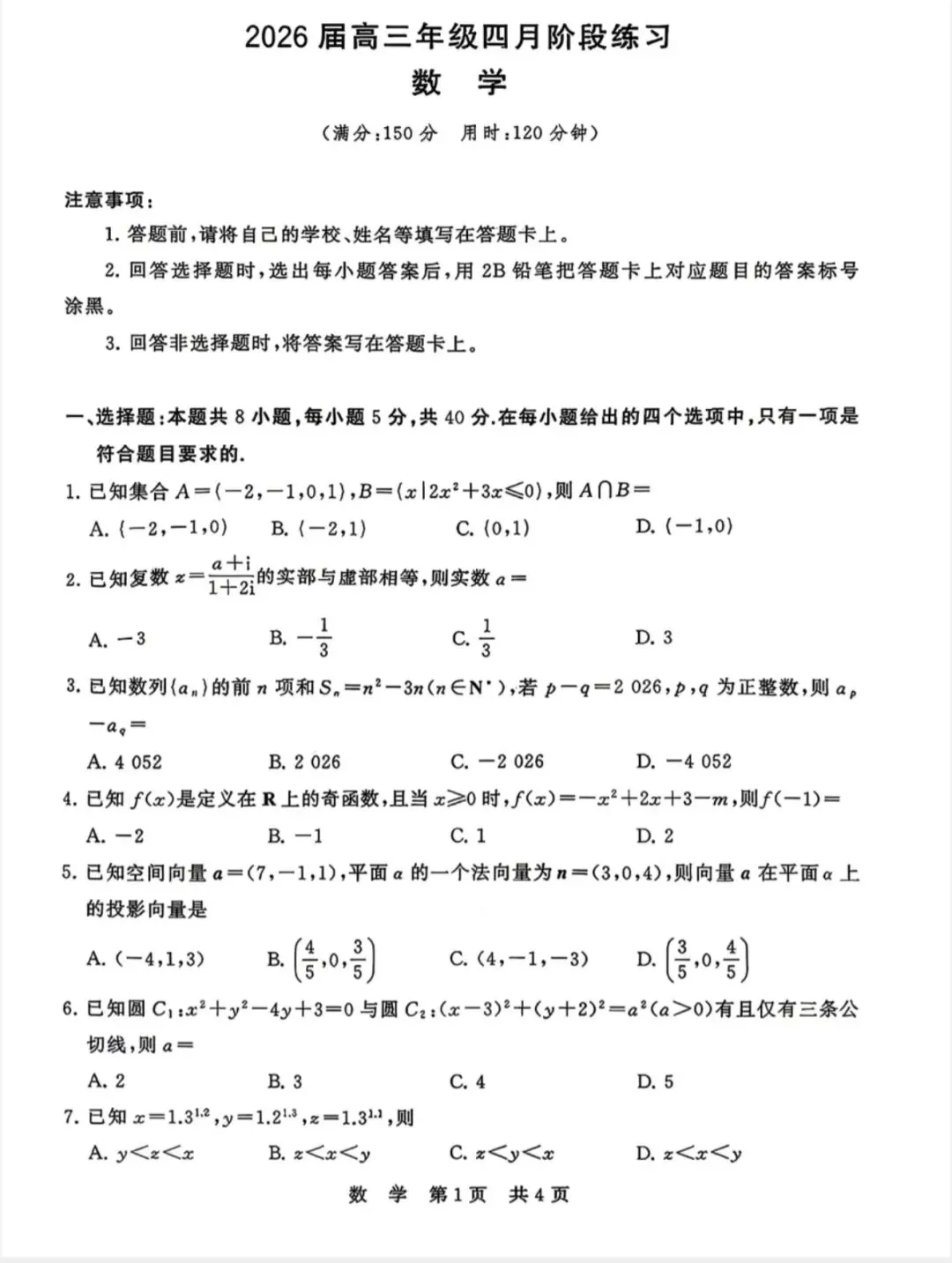 濮阳市2026年中招一模试卷及参考答案(七科全,可下载)