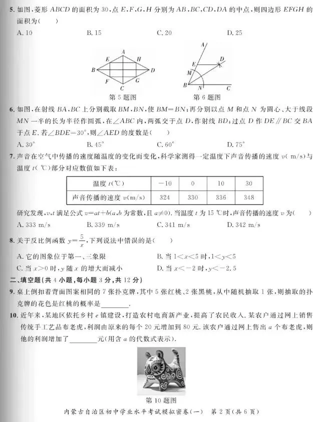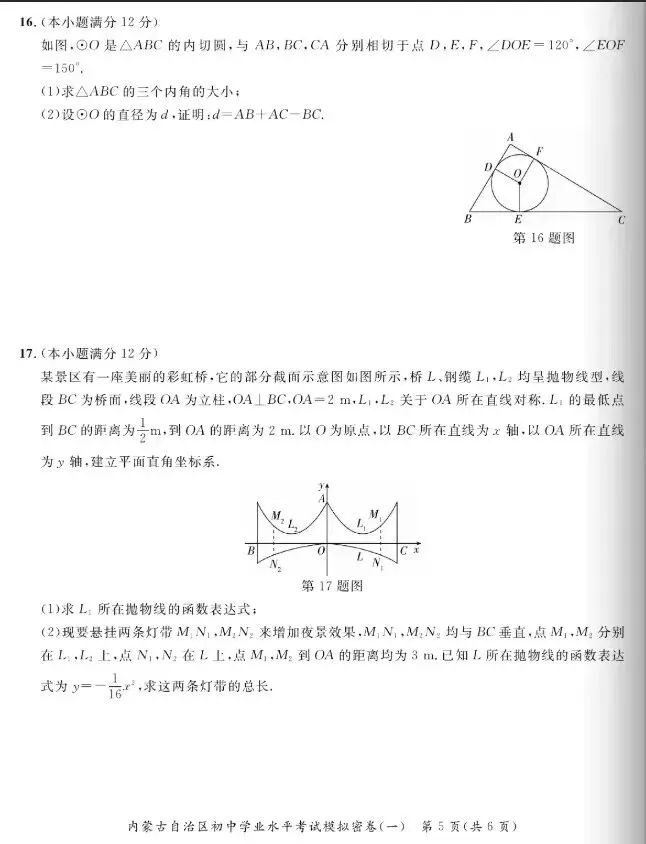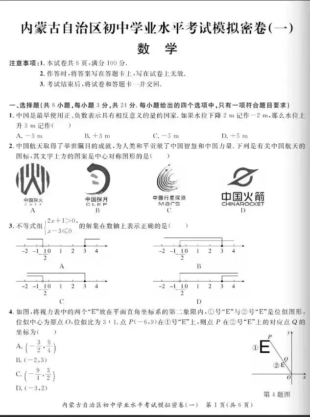 >【数学真题】内蒙初中学业水平考试模拟密卷