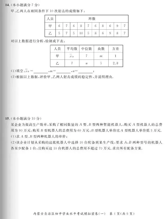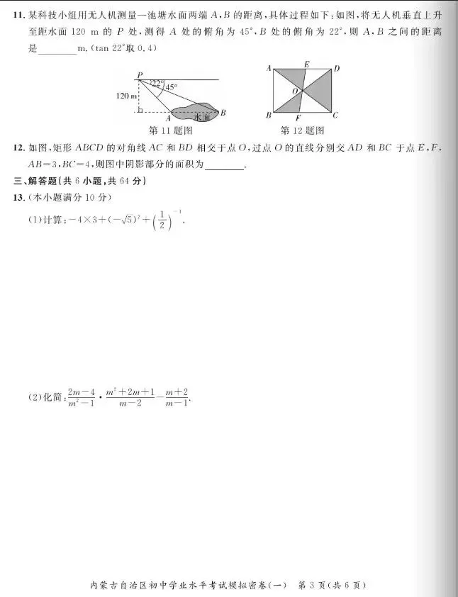 【数学真题】内蒙初中学业水平考试模拟密卷