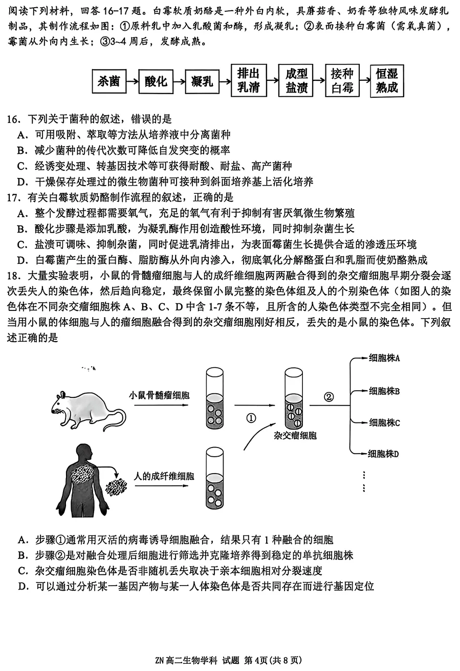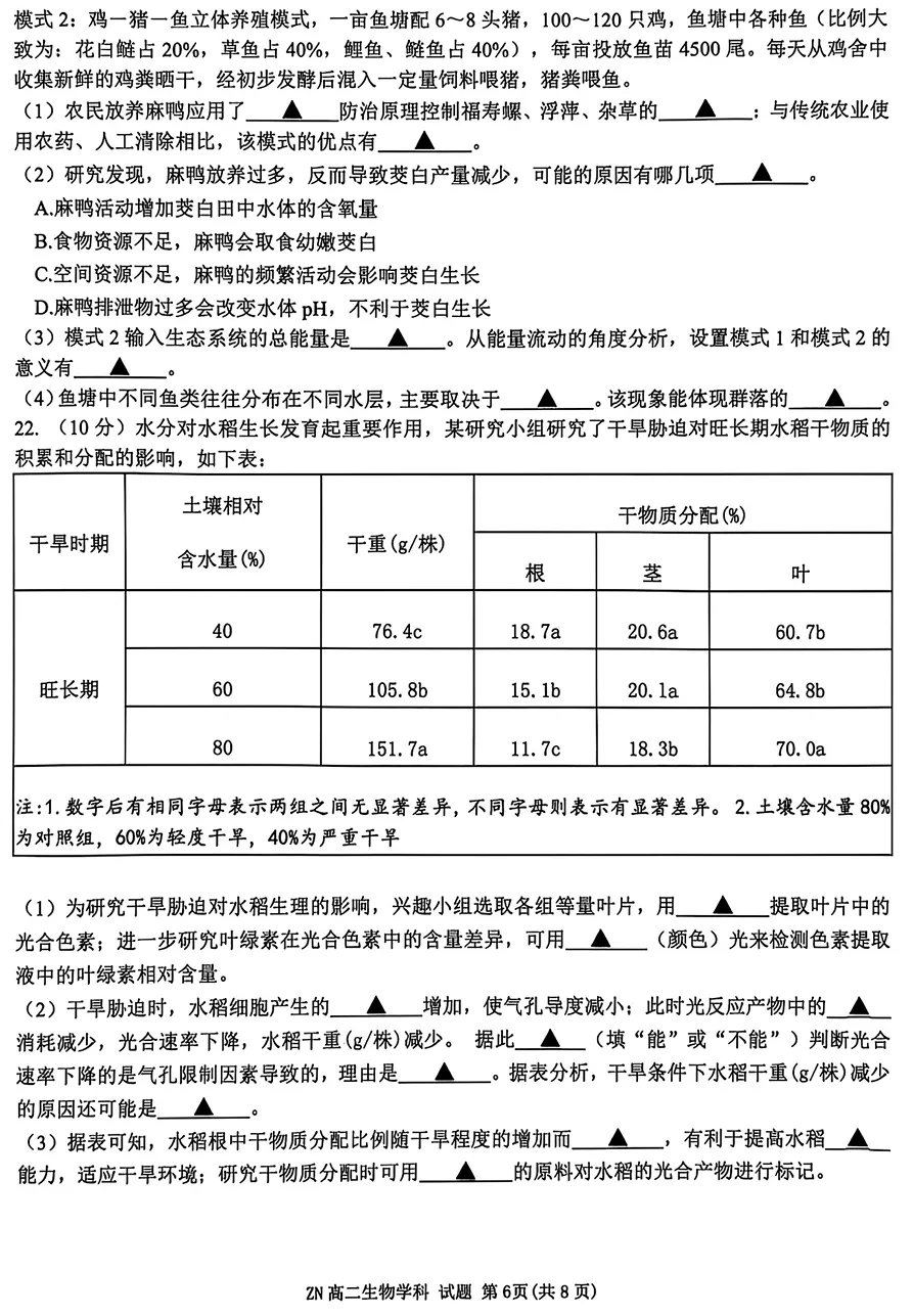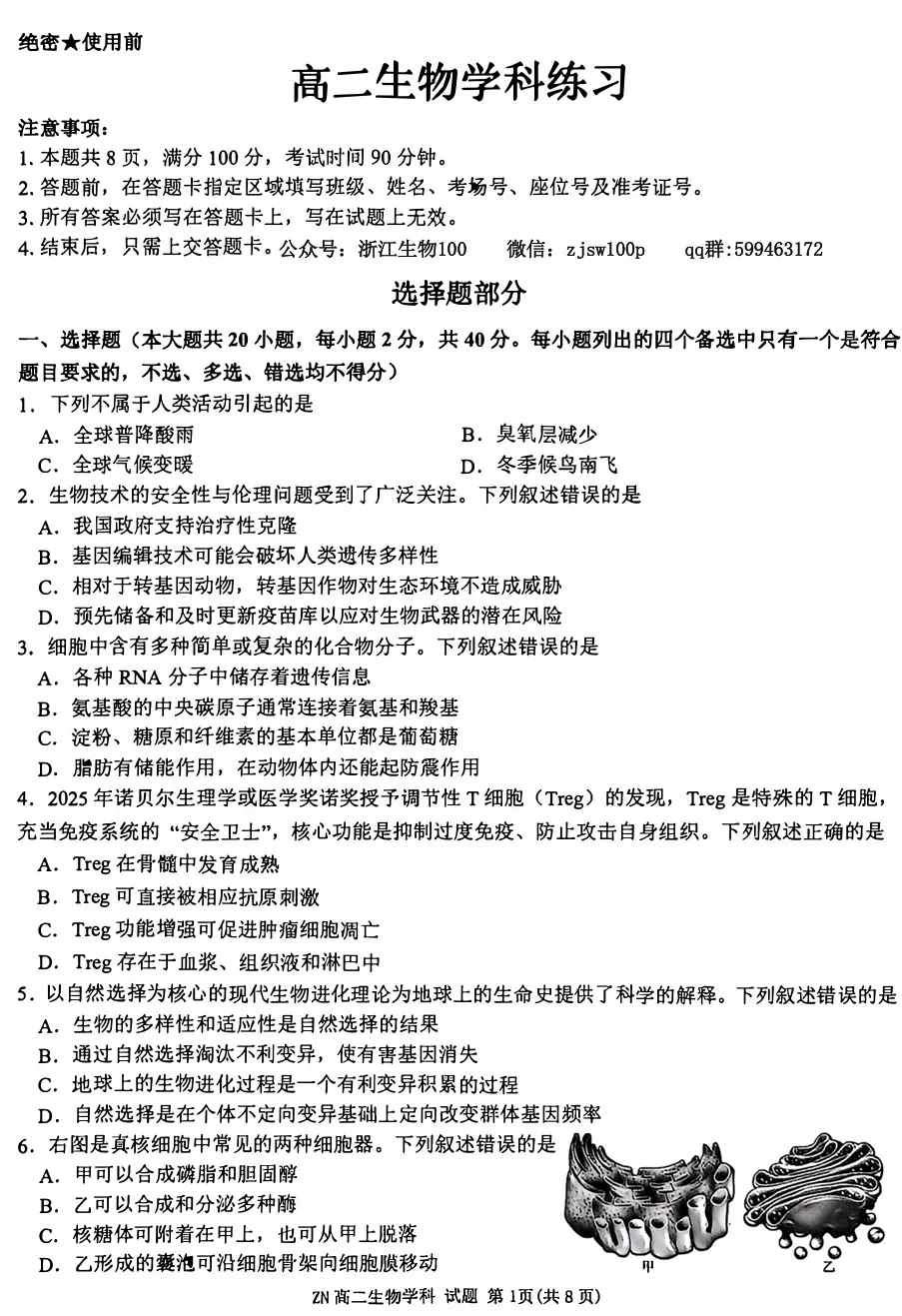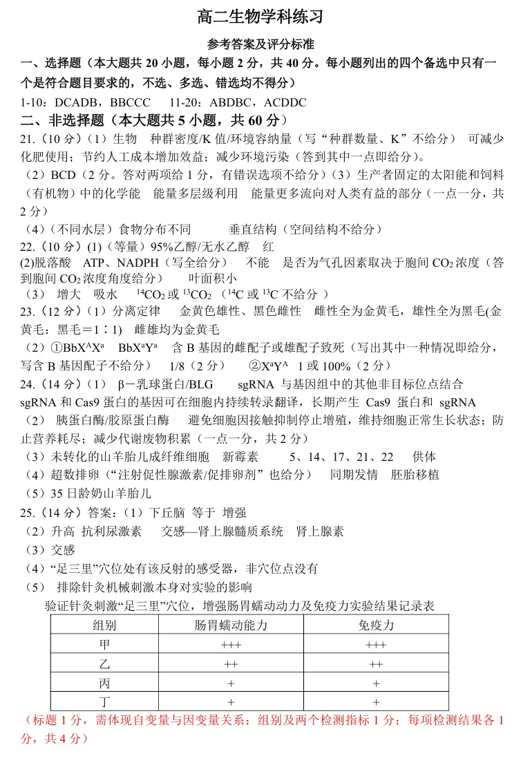 2025年4月浙江各地市高二期中考试生物试卷答案汇总可下载