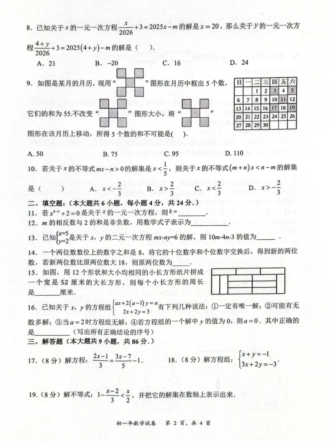 2026六年级下期浦东数学期中试卷解析