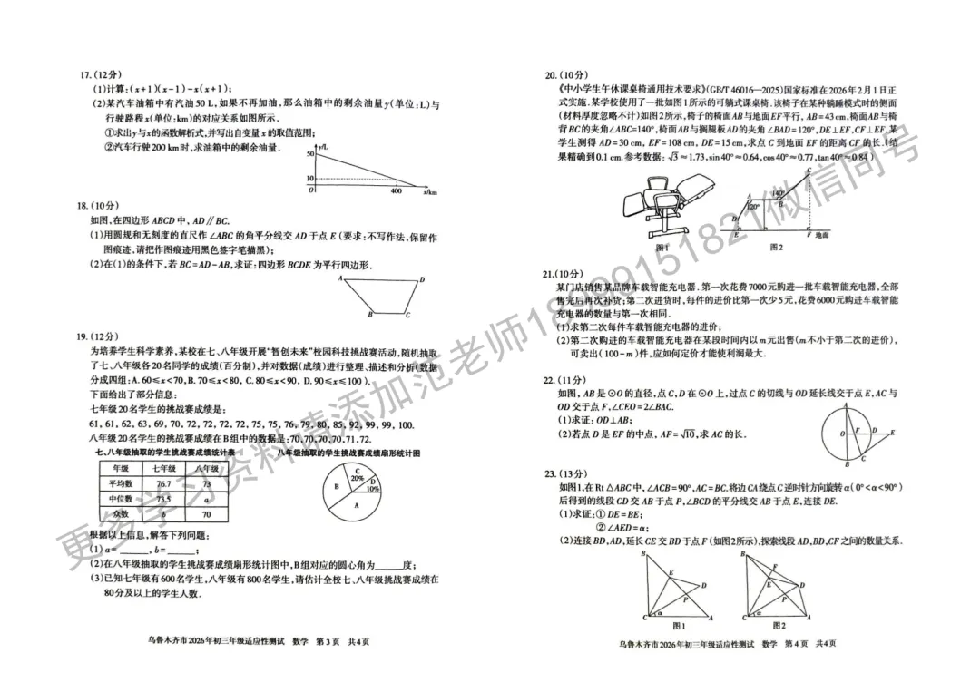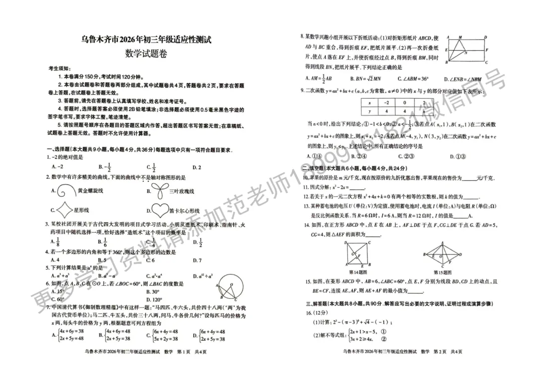 >乌鲁木齐市中考2026年初三模考数学试卷