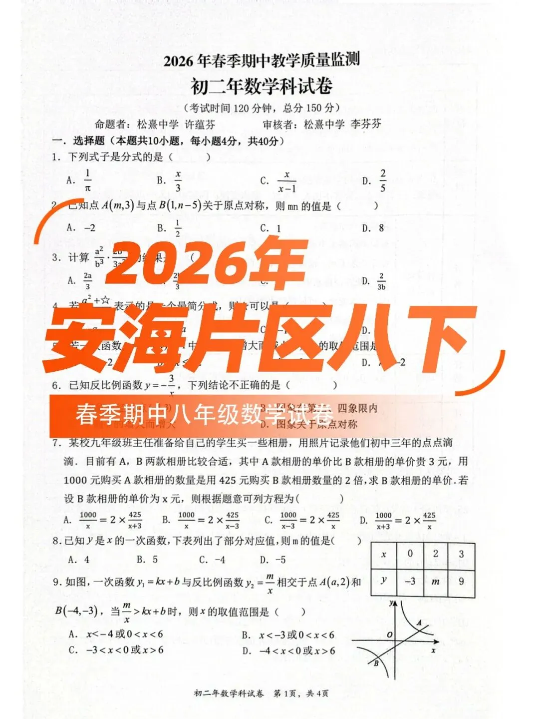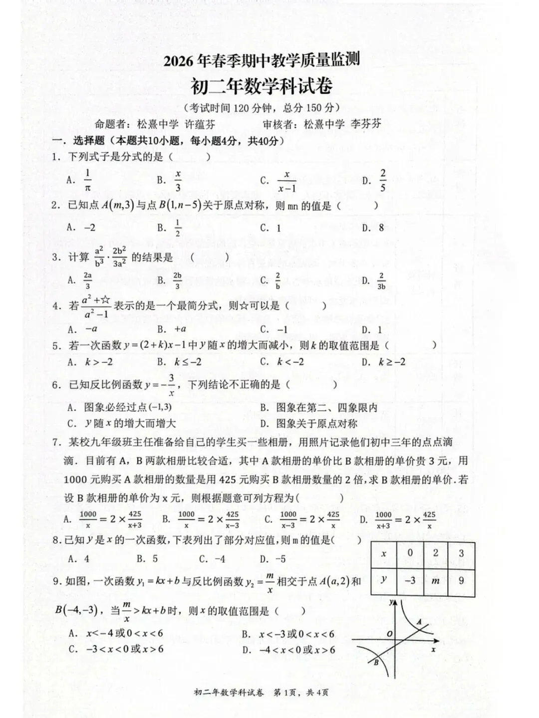 【2026年4月】宁波中考一模数学试卷&难度分析