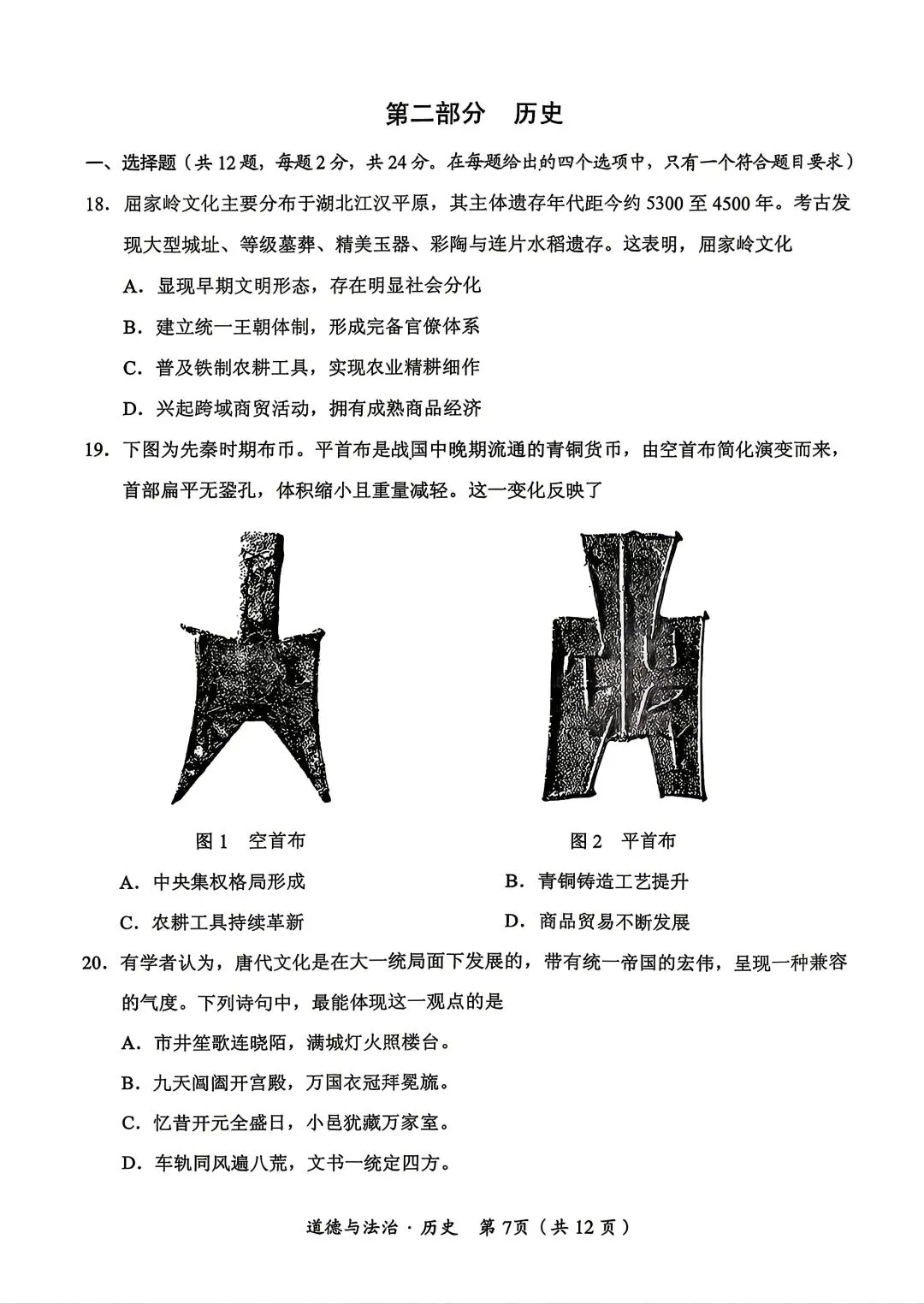 历史最新!9下26年湖北省荆州市二模历史及答案
