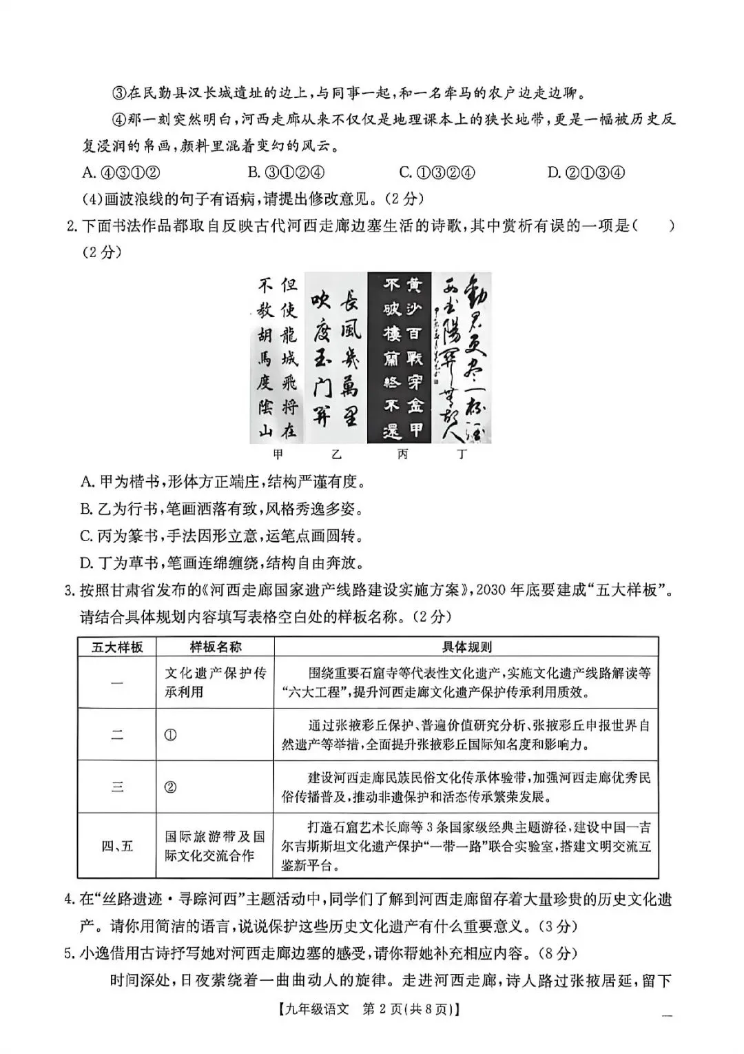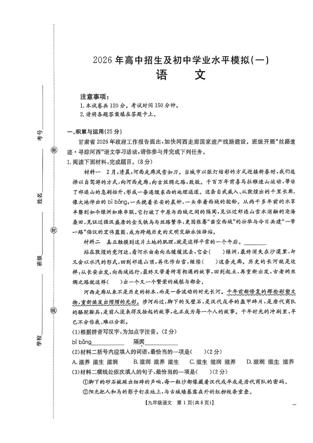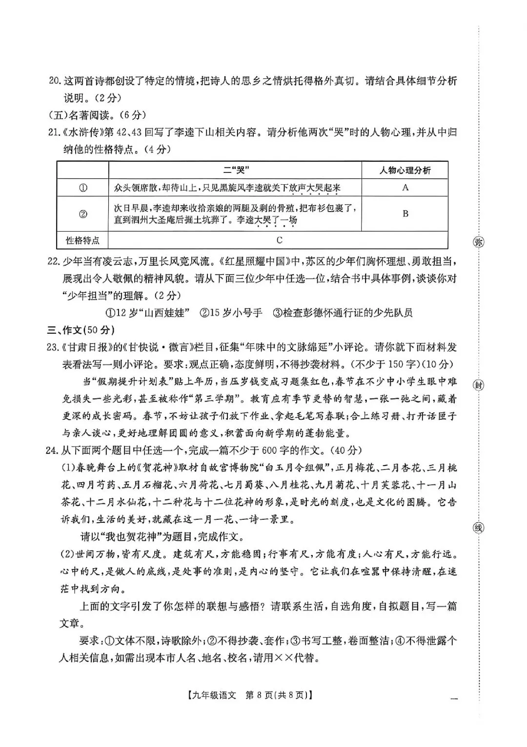 最新!9下26年湖北省荆州市二模各科试卷及答案