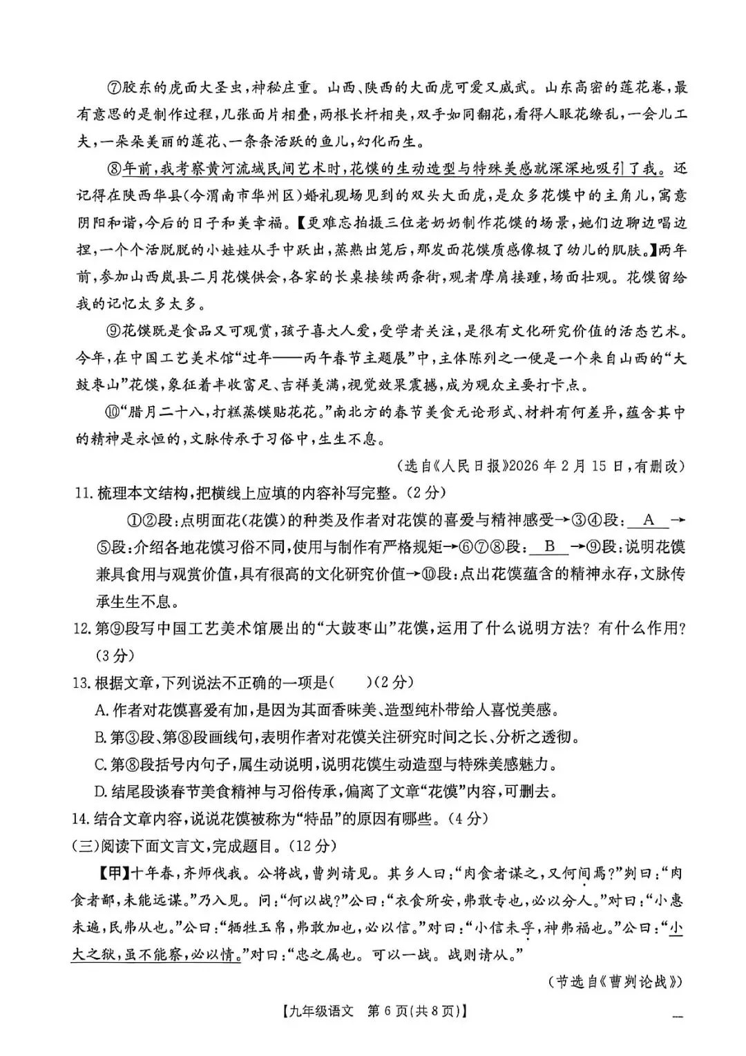 2026年武汉初三四调道法&历史【试卷】完整版!