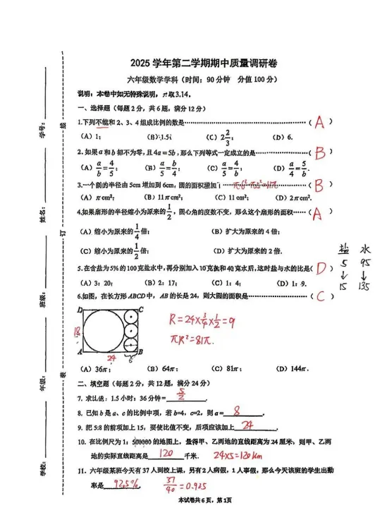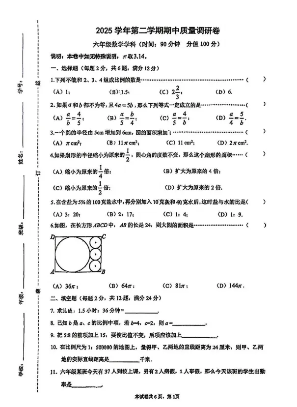 当前位置:首页>考研真题>2026六年级下期杨浦数学期中试卷解析