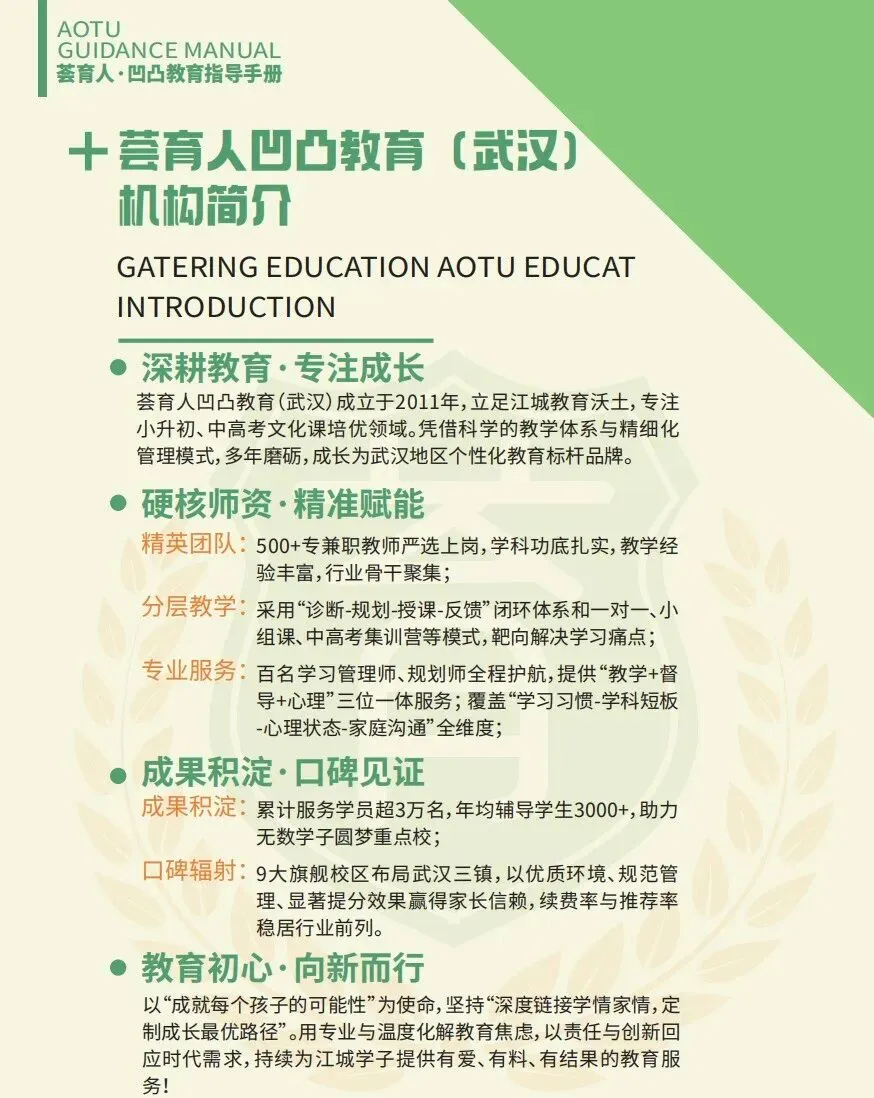武汉荟育人凹凸教育深耕本地 教育多年,聚焦小升初、中考、高考全阶段文化课辅导。依托成熟个性化教学模式,结合武汉本地考情与升学政策,开设一对一、精品小班等多元班型。师资团队经验扎实,针对性攻克学科薄弱点,搭配全程学情跟踪管理。多校区覆盖武汉三镇,凭借扎实教学质量与良好家长口碑,助力本地学生高效提分、稳步升学。