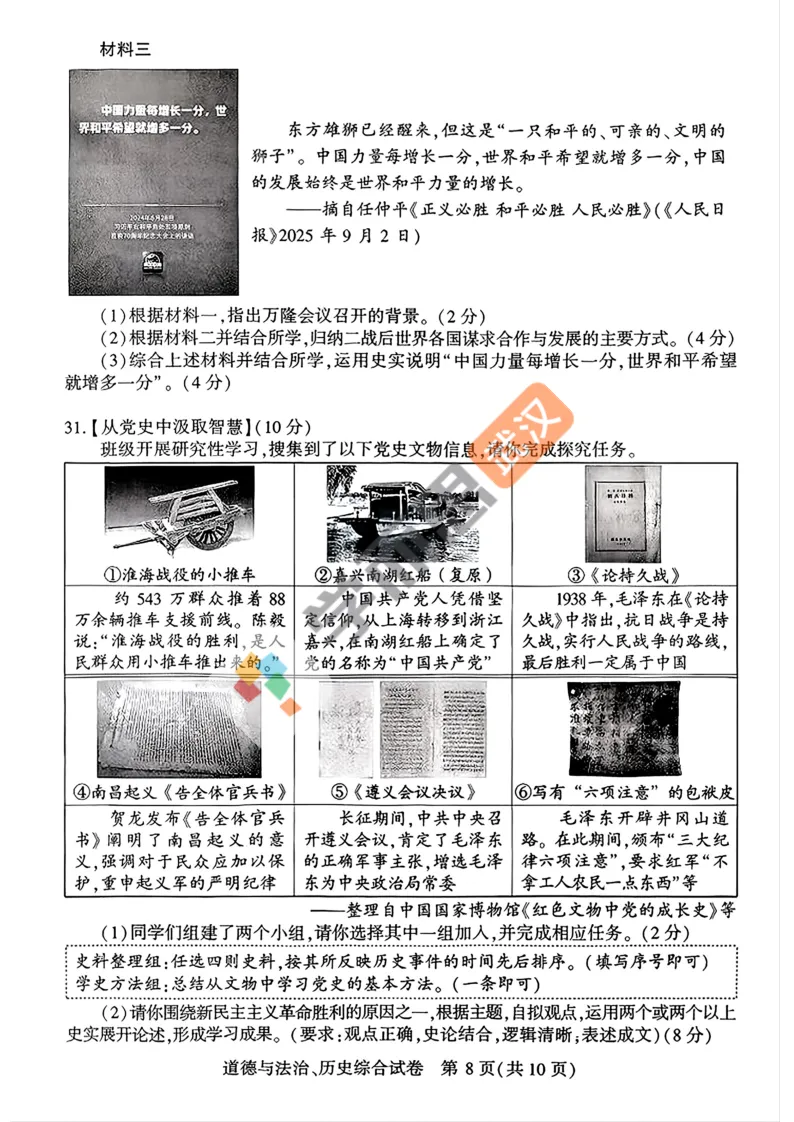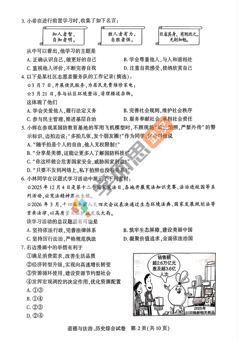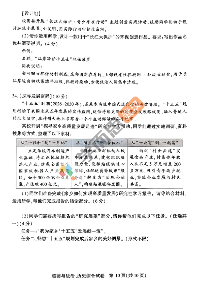 最新!9下26年湖北省荆州市二模各科试卷及答案