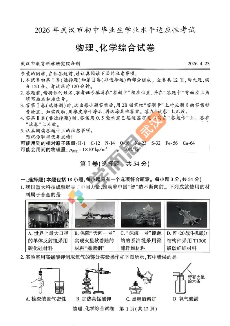 从今天起,武汉初三四月调考正式开考!武汉准高中生第一时间收集了四低试卷,供初三学子们查漏补缺~