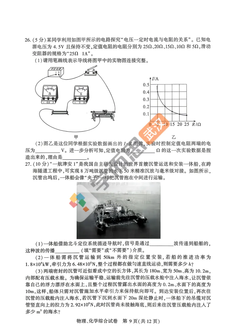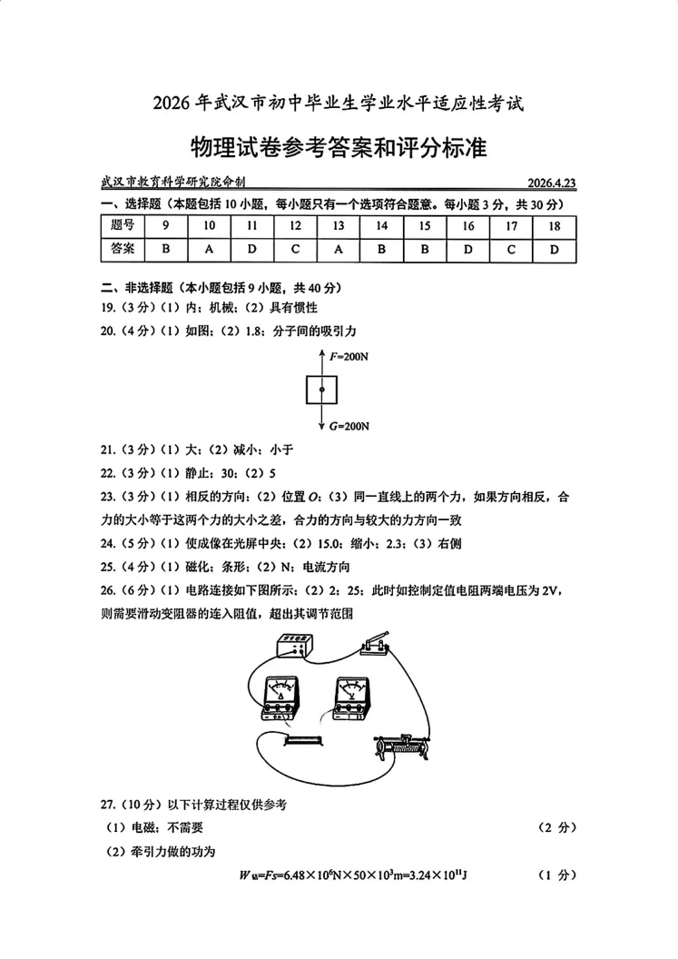 最新!9下26年湖北省荆州市二模各科试卷及答案