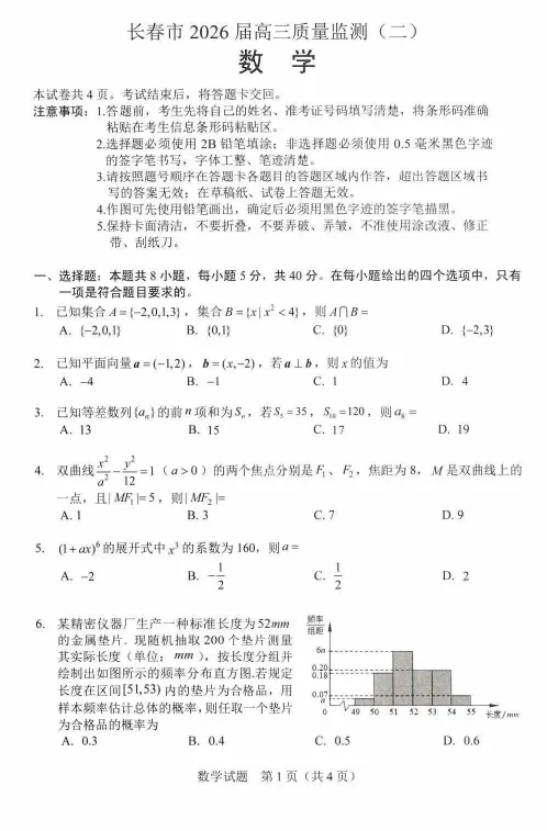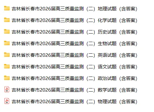 【高三试卷】吉林省长春市2026届高三质量监测(二)(全科)
