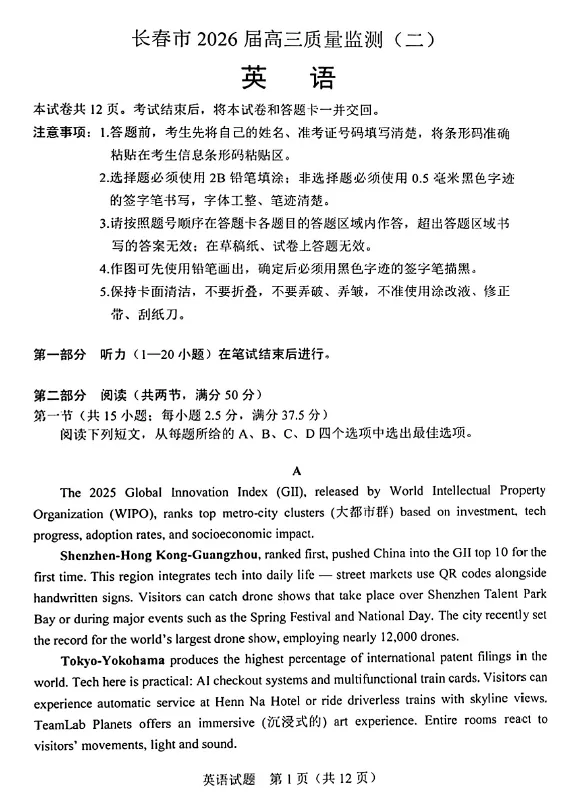 >【高三试卷】吉林省长春市2026届高三质量监测(二)(全科)