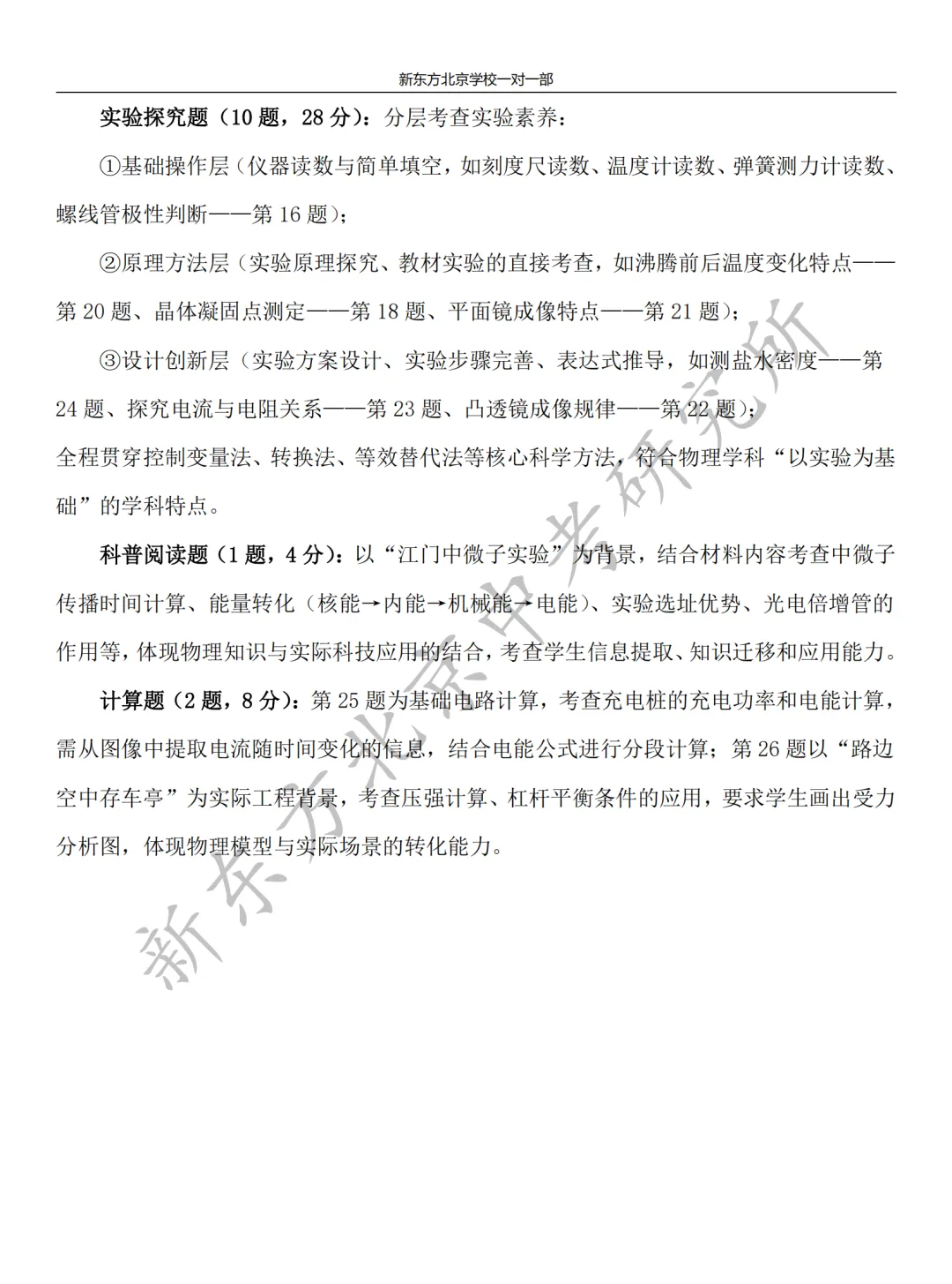 本次考试延续西城区物理命题一贯风格,基础扎实、情境鲜活、突出探究、分层清晰,全面覆盖力学、电学、热学、光学、磁学核心模块,精准检验一轮复习成果,为中考冲刺提供明确方向。