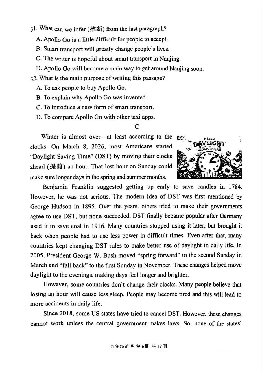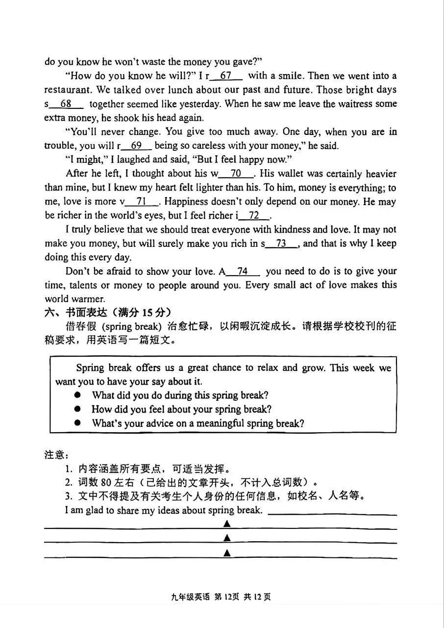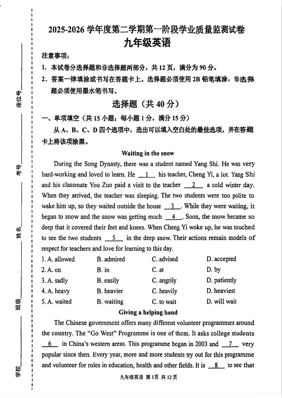 最新!2026 秦淮一模英语试卷来了��