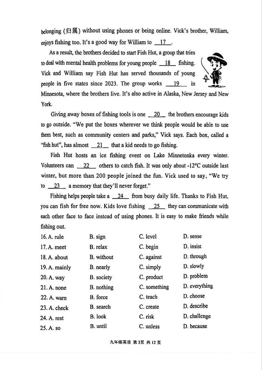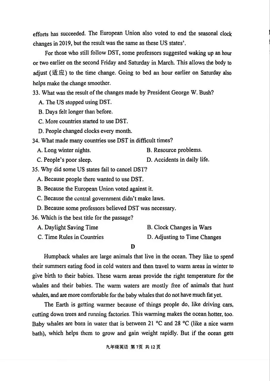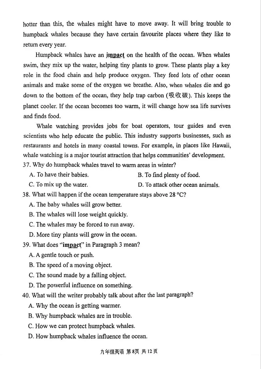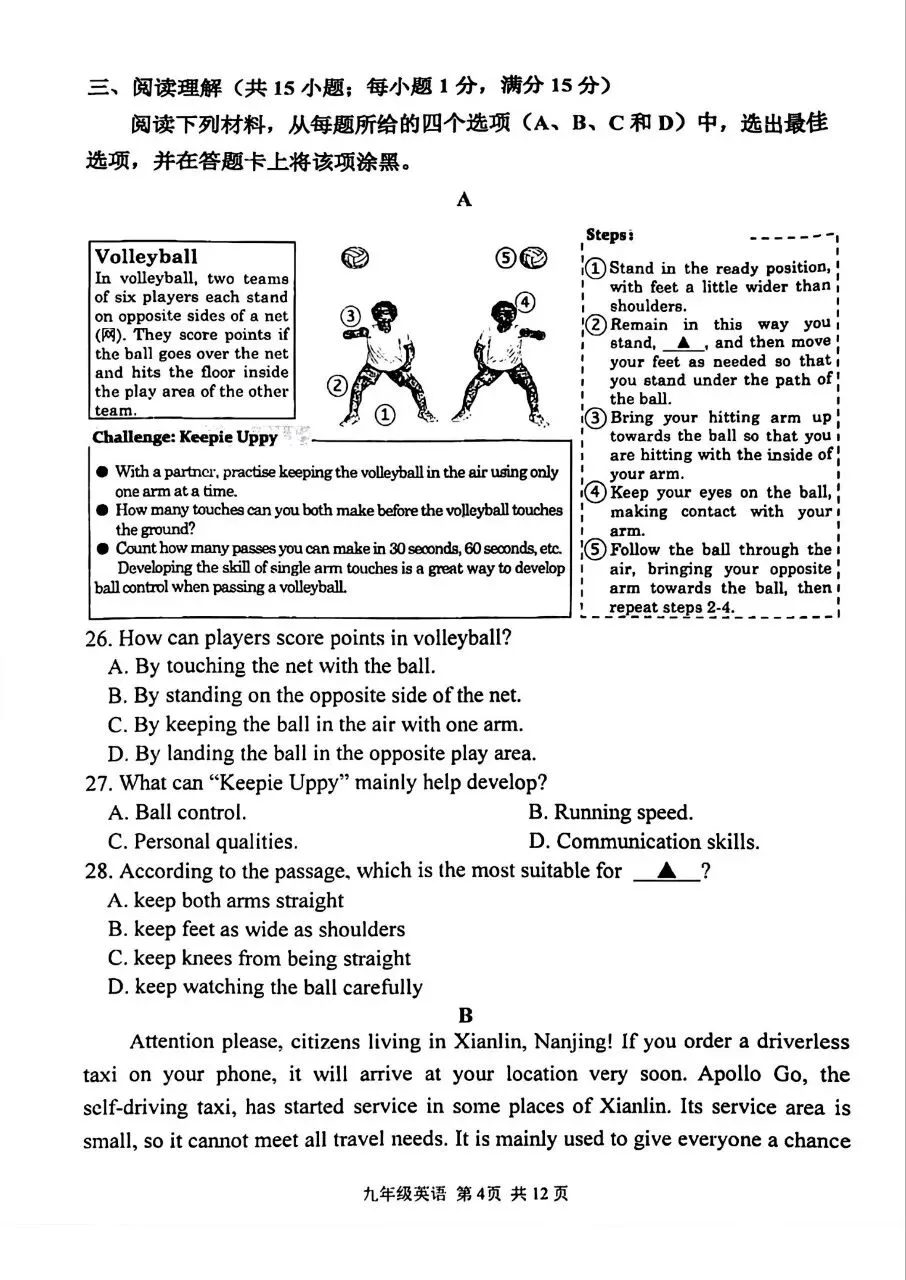 2026北京通州初三一模英语试卷(含答案)