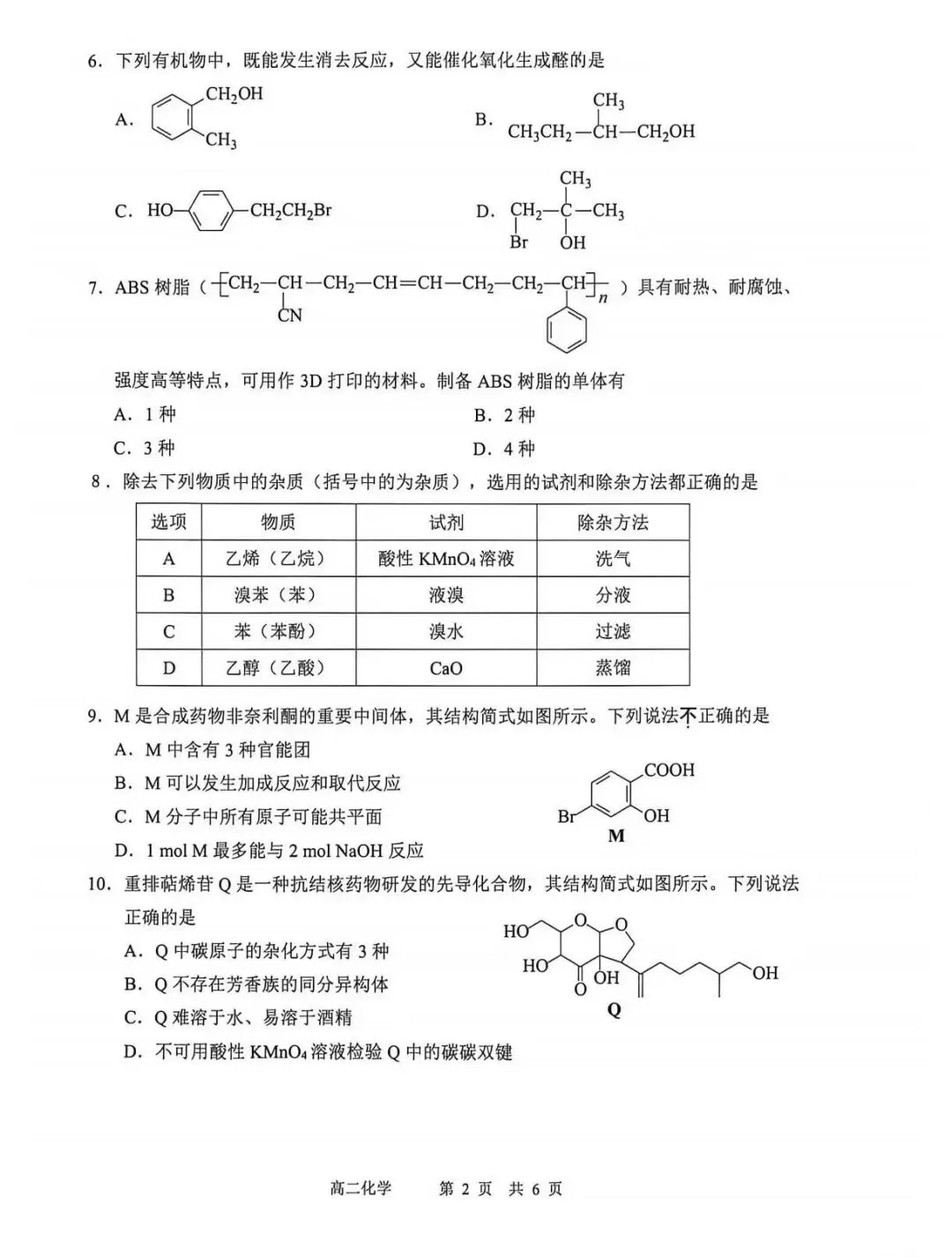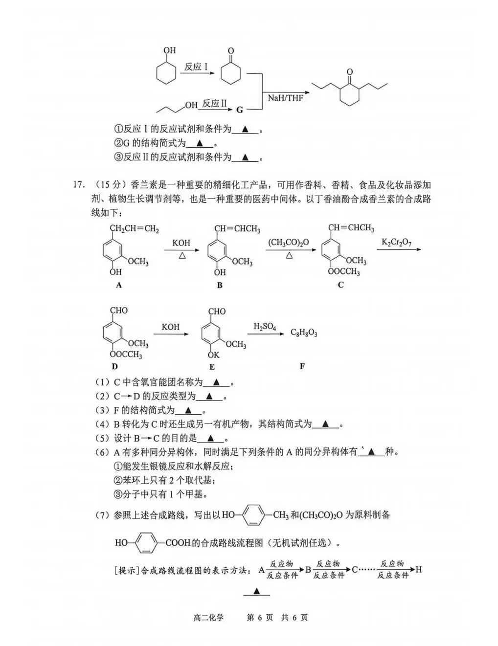 高二化学期中试卷