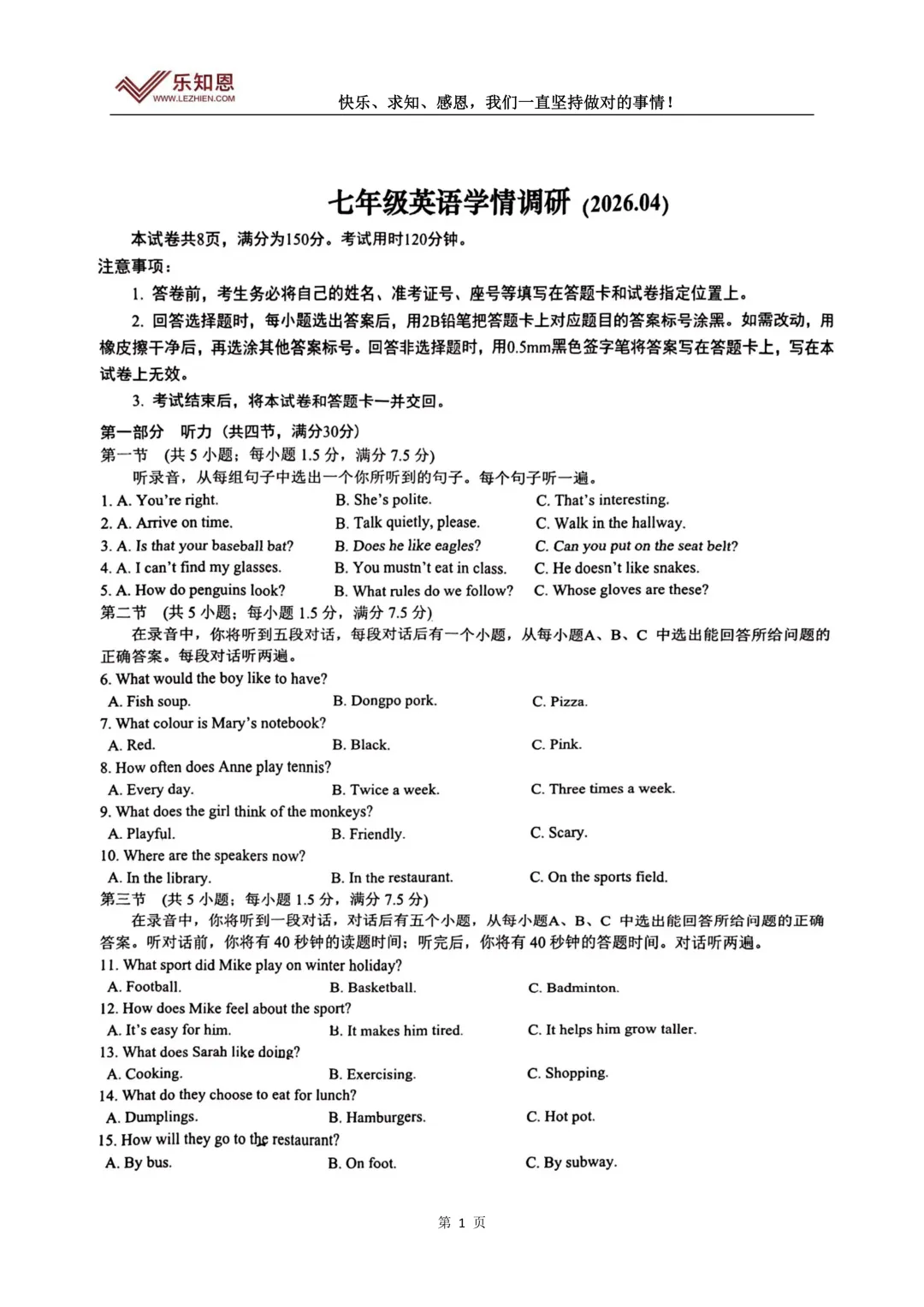 当前位置:首页>考研真题>2026.4七年级下册济南历下期中英语试卷