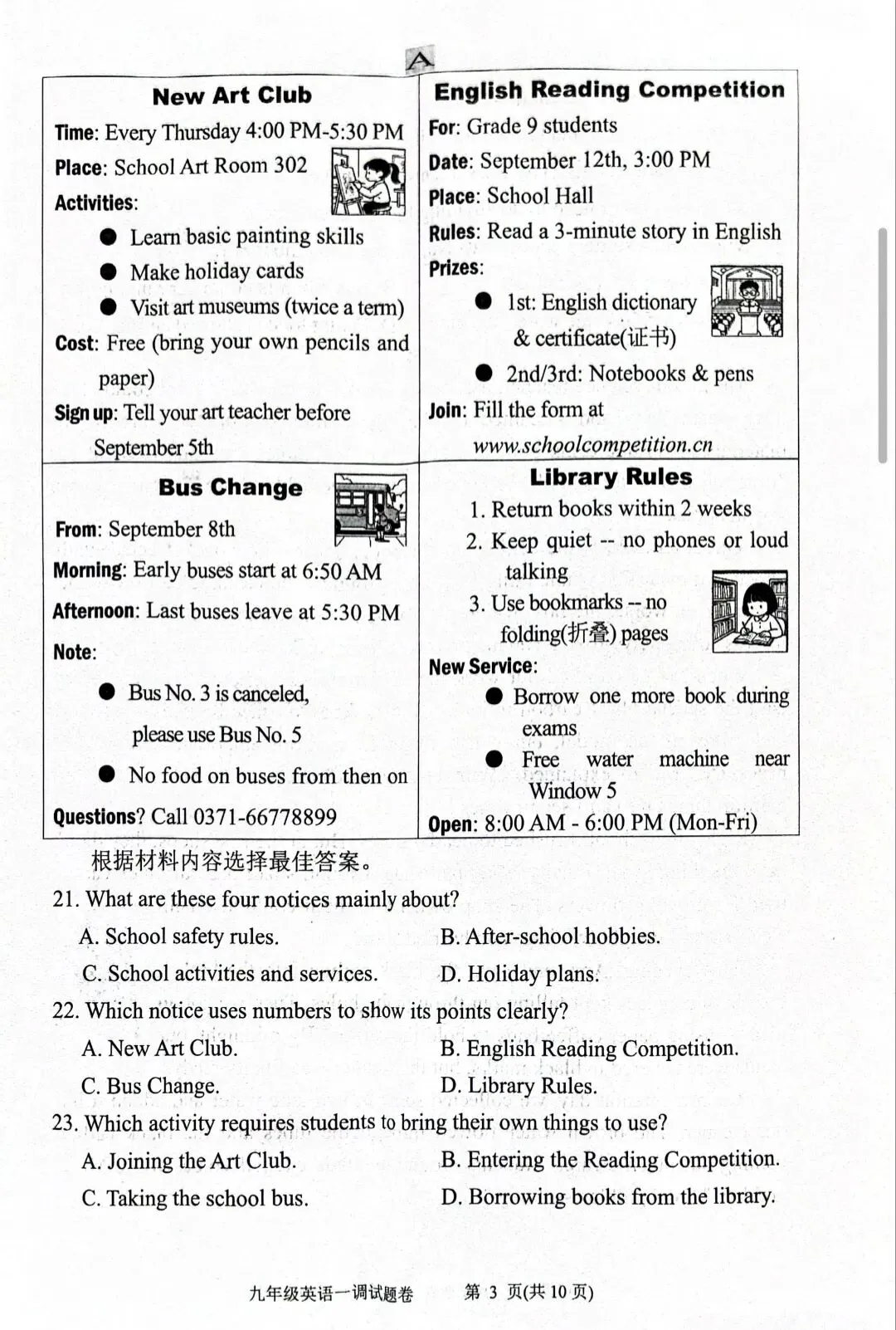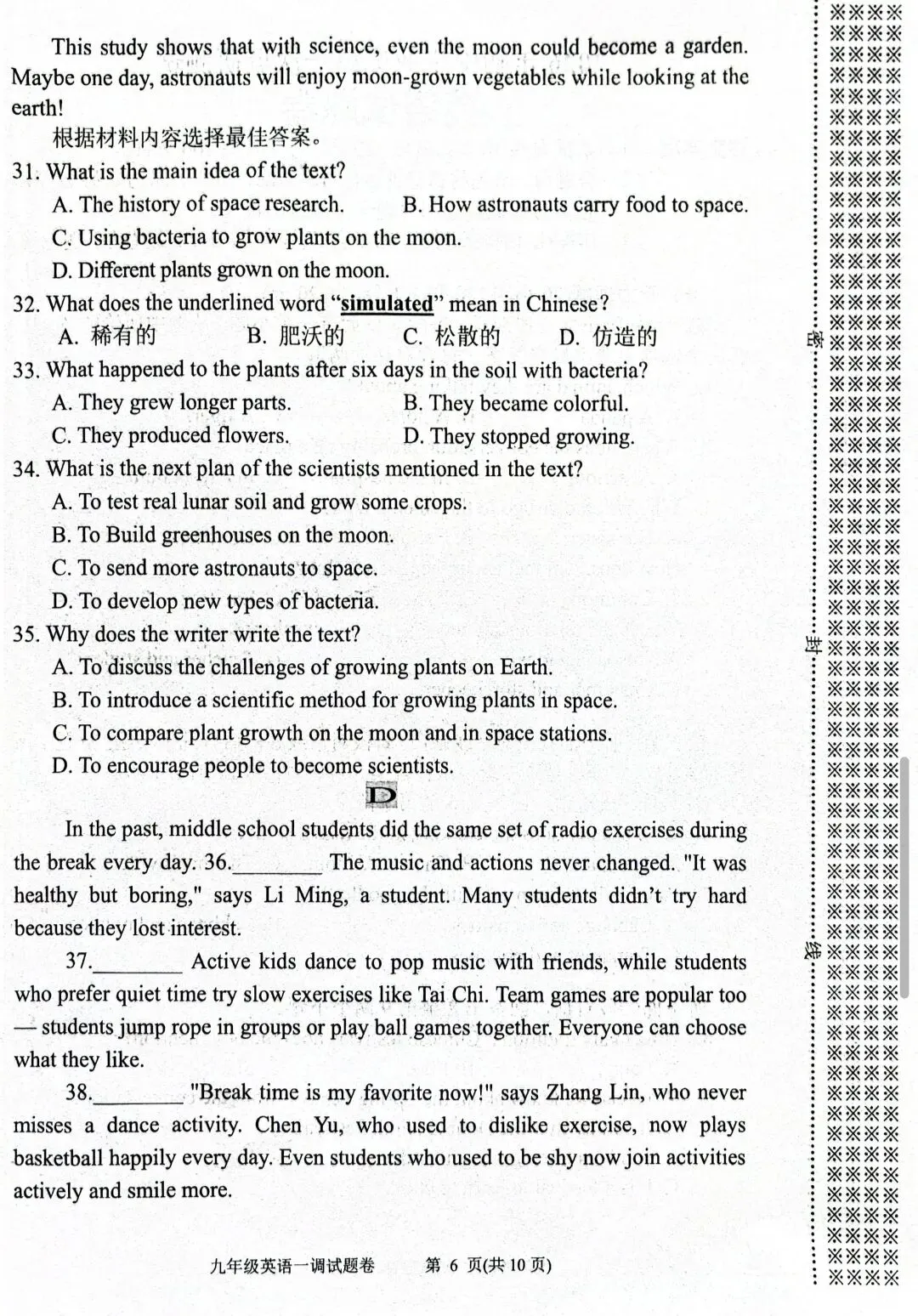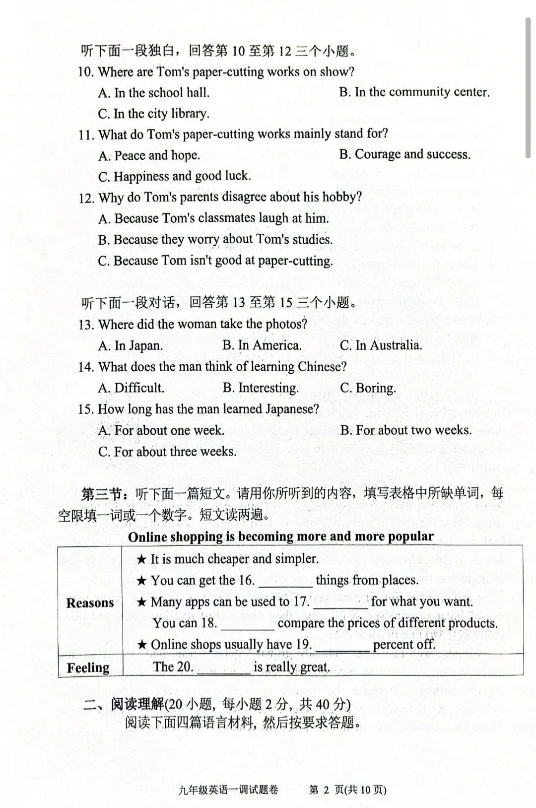 秦淮区 初三一模英 语试卷