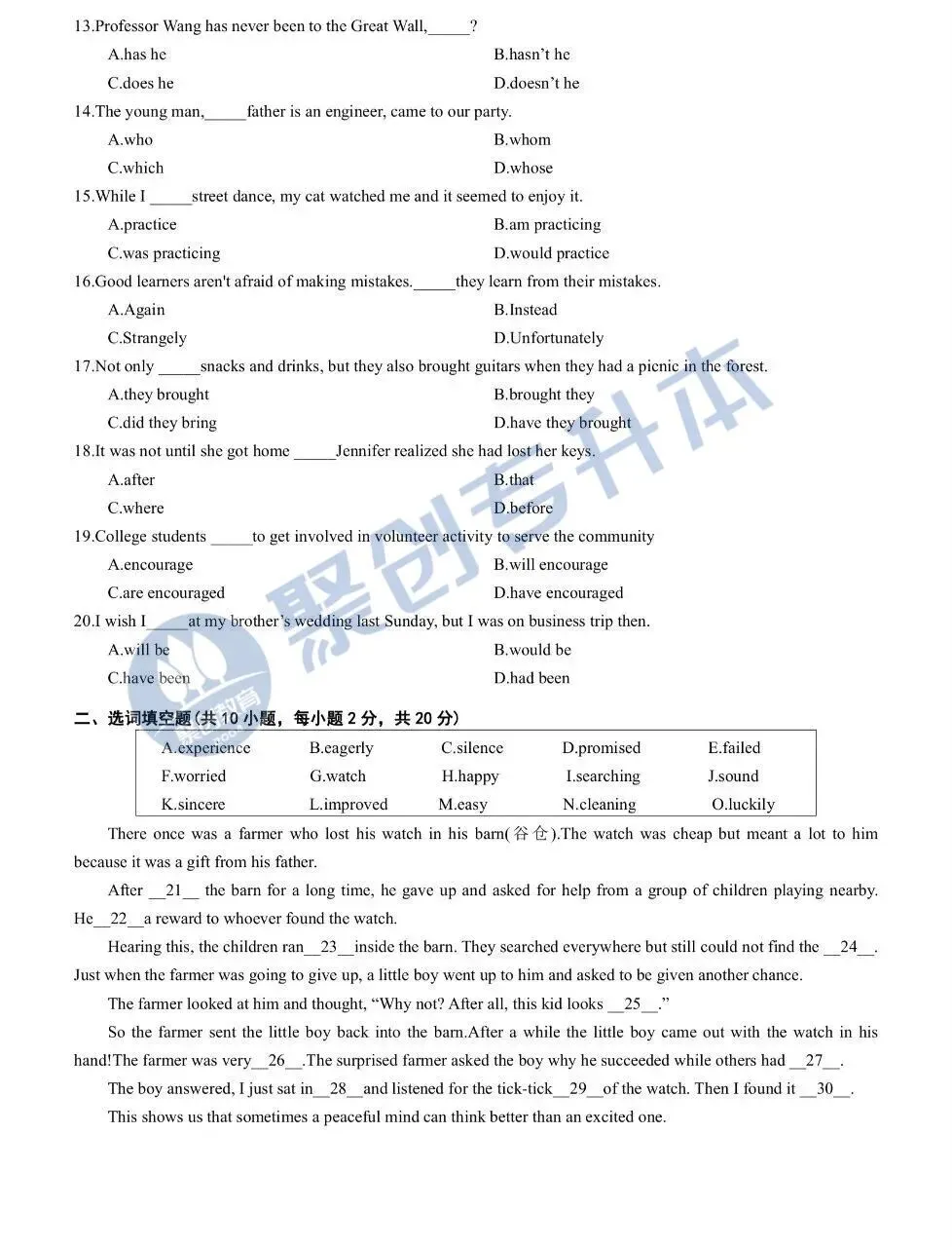 >【考试真题】2026江西专升本英语真题(考生回忆版)