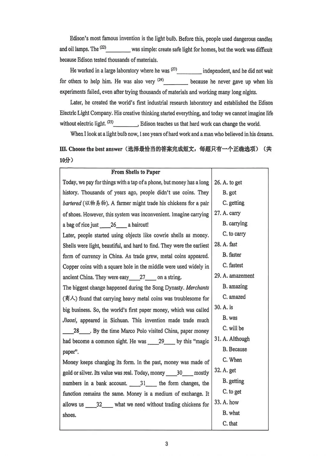 浙江省专升本考试英语2025年真题及解析——阅读理解4选1 Passage three